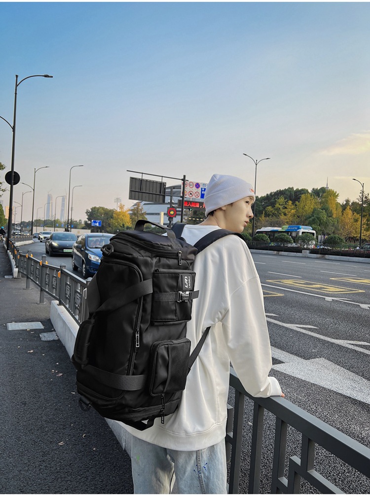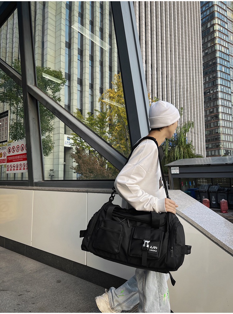 Elevate your travel experience with this Travel Duffel Bag, designed for both men and women with a sleek dark aesthetic and practical utility. Perfect for business trips, gym sessions, or weekend getaways, this bag features multiple pockets, including a wet/dry separation compartment to keep your belongings organized and protected. The durable fabric and sturdy buckles ensure long-lasting use.