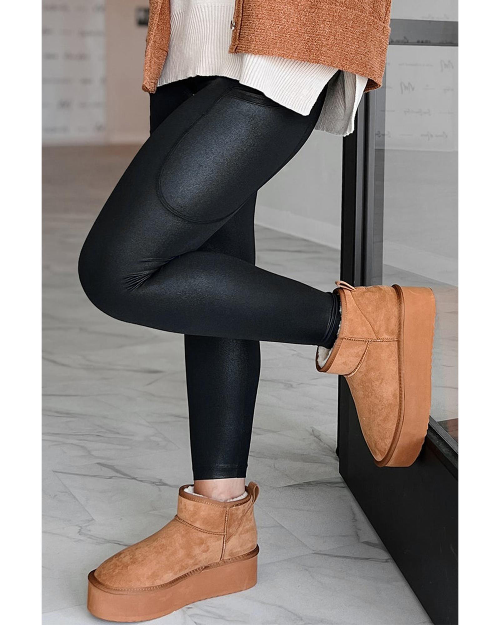 Black V Crossover High Waist Pocketed Leggings – M