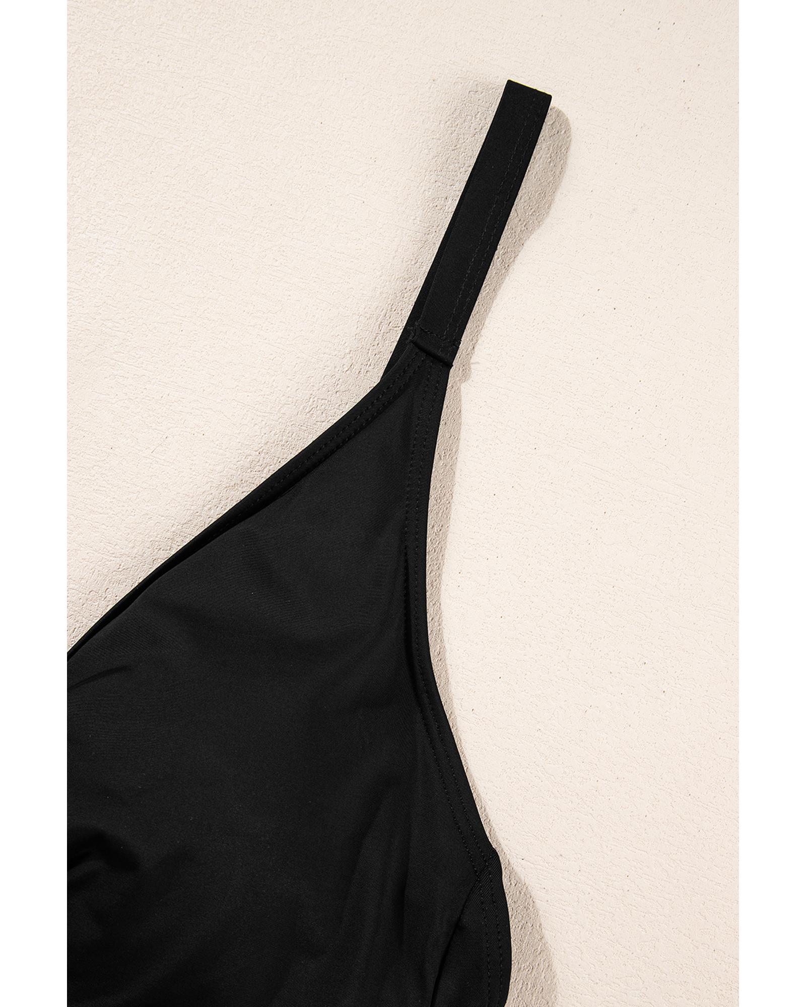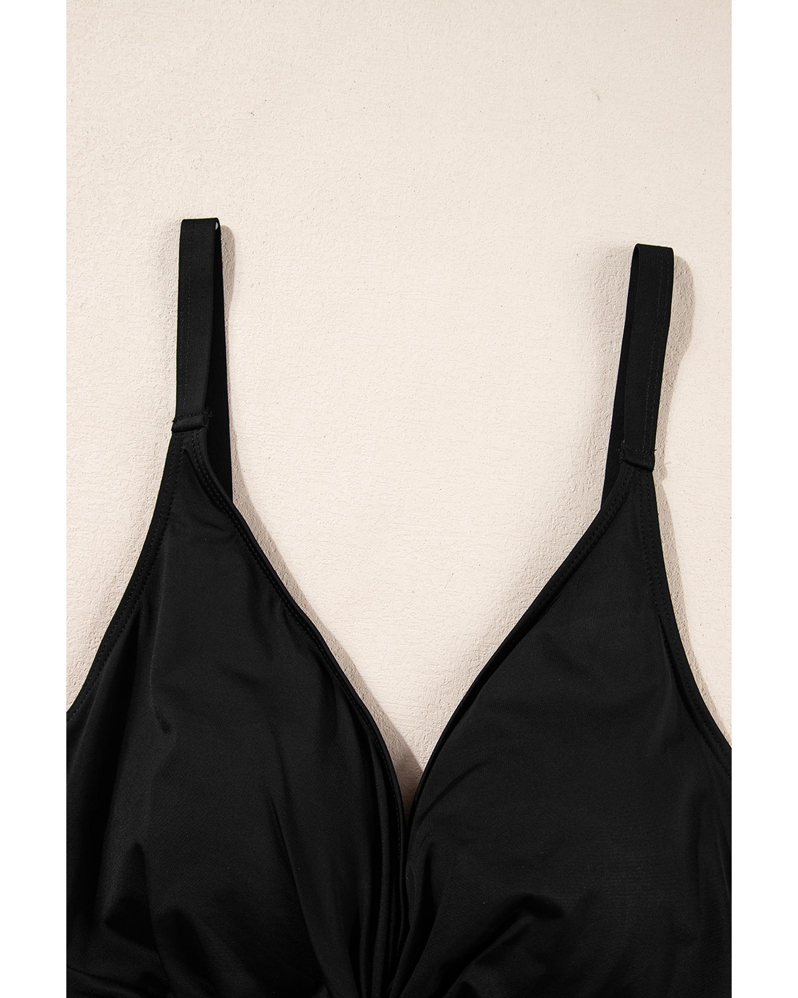 Black V Neck Twist Ruched Crisscross Backless One-Piece Swimsuit – S