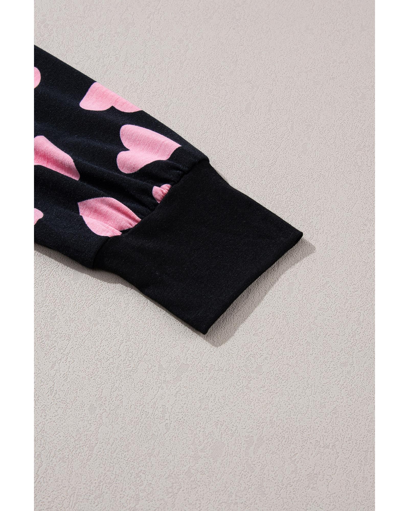 - Black Valentine Heart Shape Print Long Sleeve Top Shorts Lounge Set