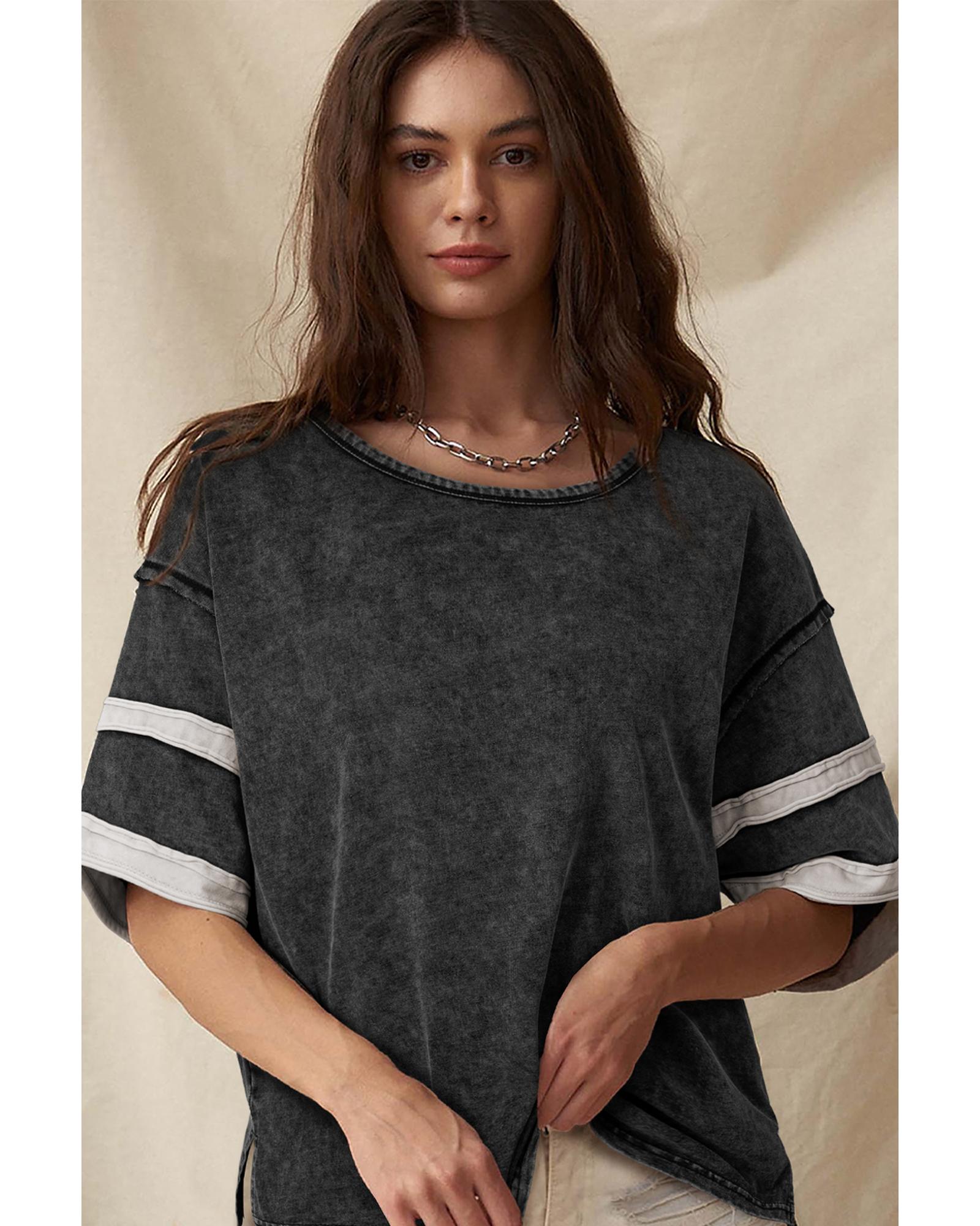 - Black Varsity Stripe Half Sleeve Vintage Tee