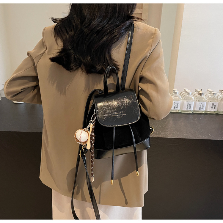 Black Vintage Suede Women’s Mini Backpack – New Fashionable Travel Book Bag with Decorative Charm