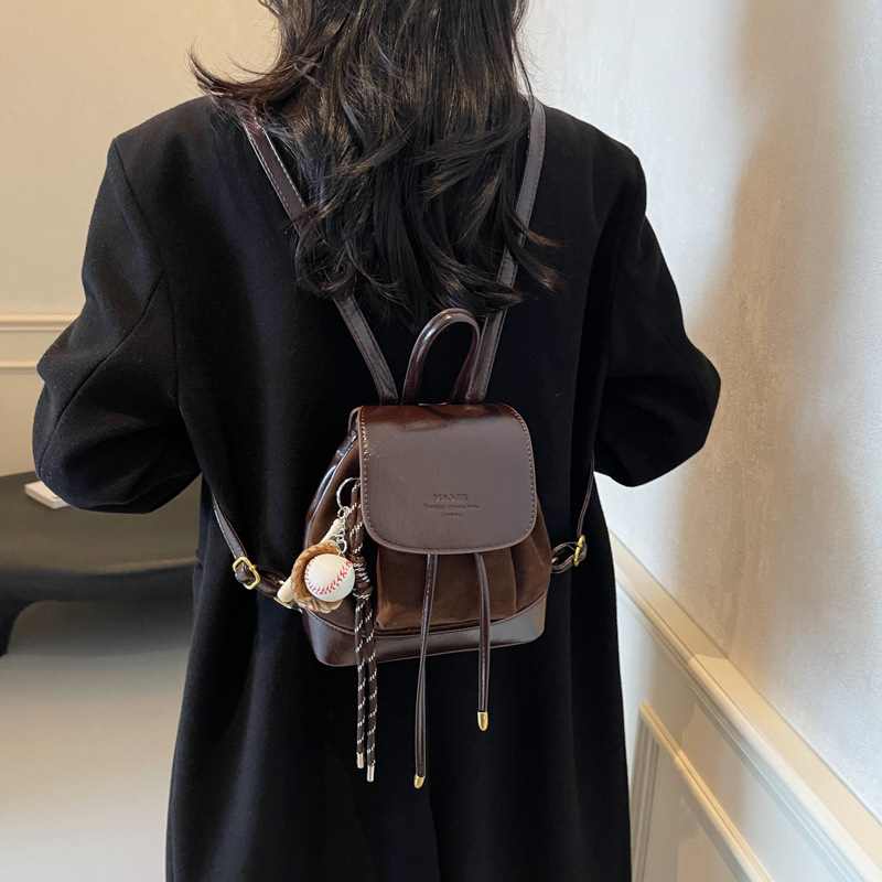 Upgrade your style with this chic and practical mini backpack. Made from high-quality suede and designed with a vintage aesthetic, this backpack is perfect for daily use, travel, or as a unique addition to your wardrobe. The attached charm adds a playful and elegant touch to your ensemble.