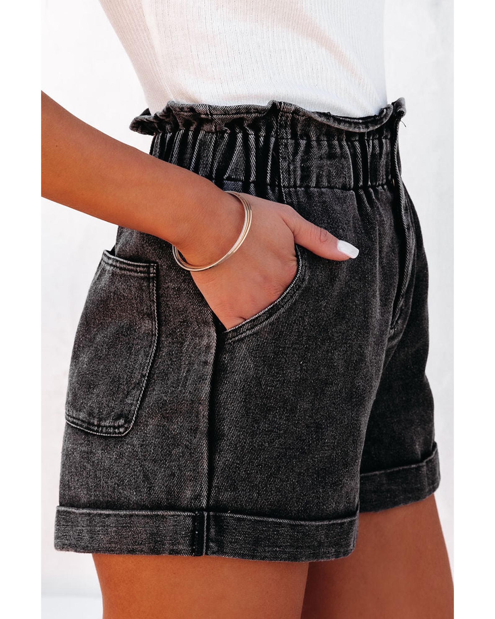 Black Vintage Washed Frilled High Waist Denim Shorts – 12 US