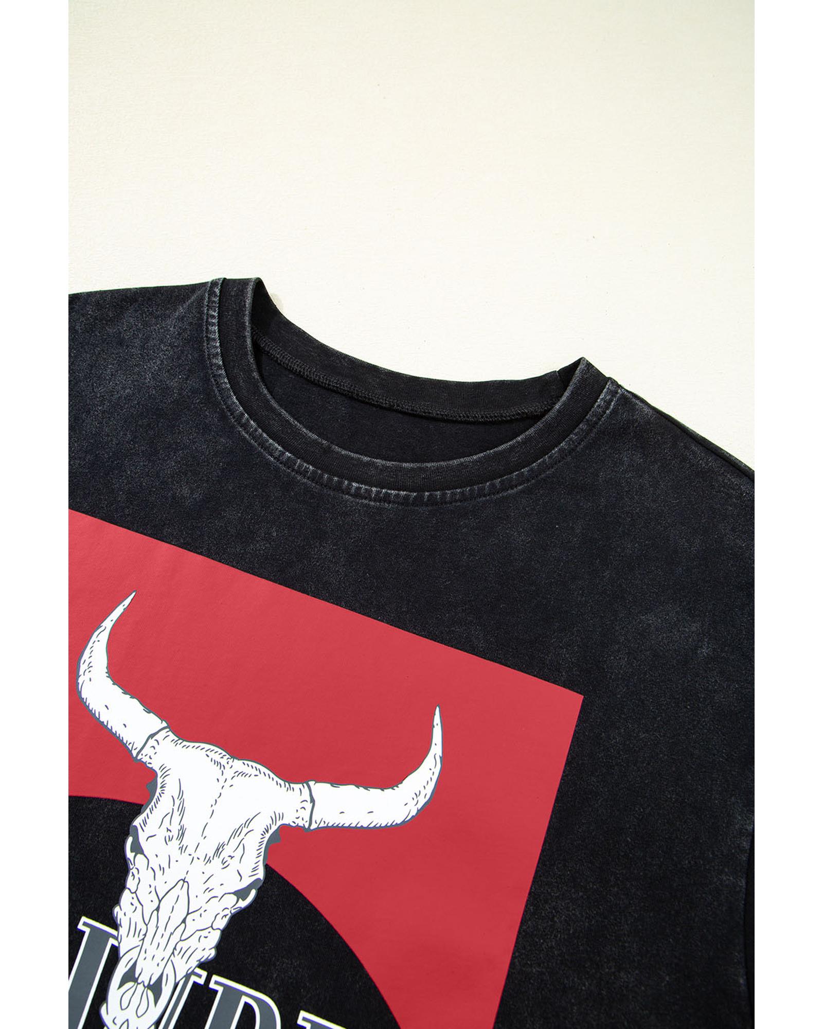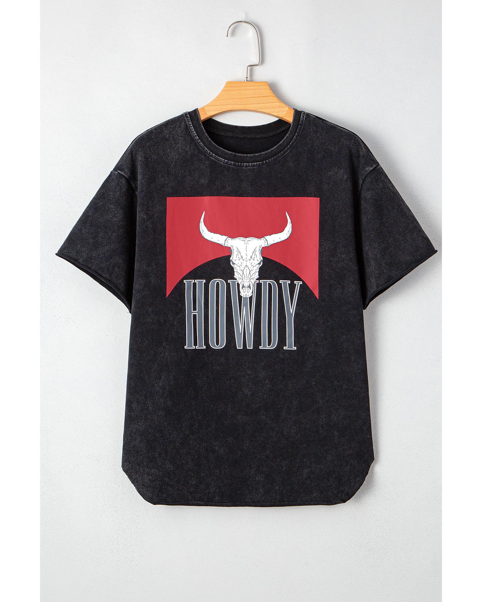 Black Western HOWDY Steer Head Print Side Slits Loose Fit T Shirt – L