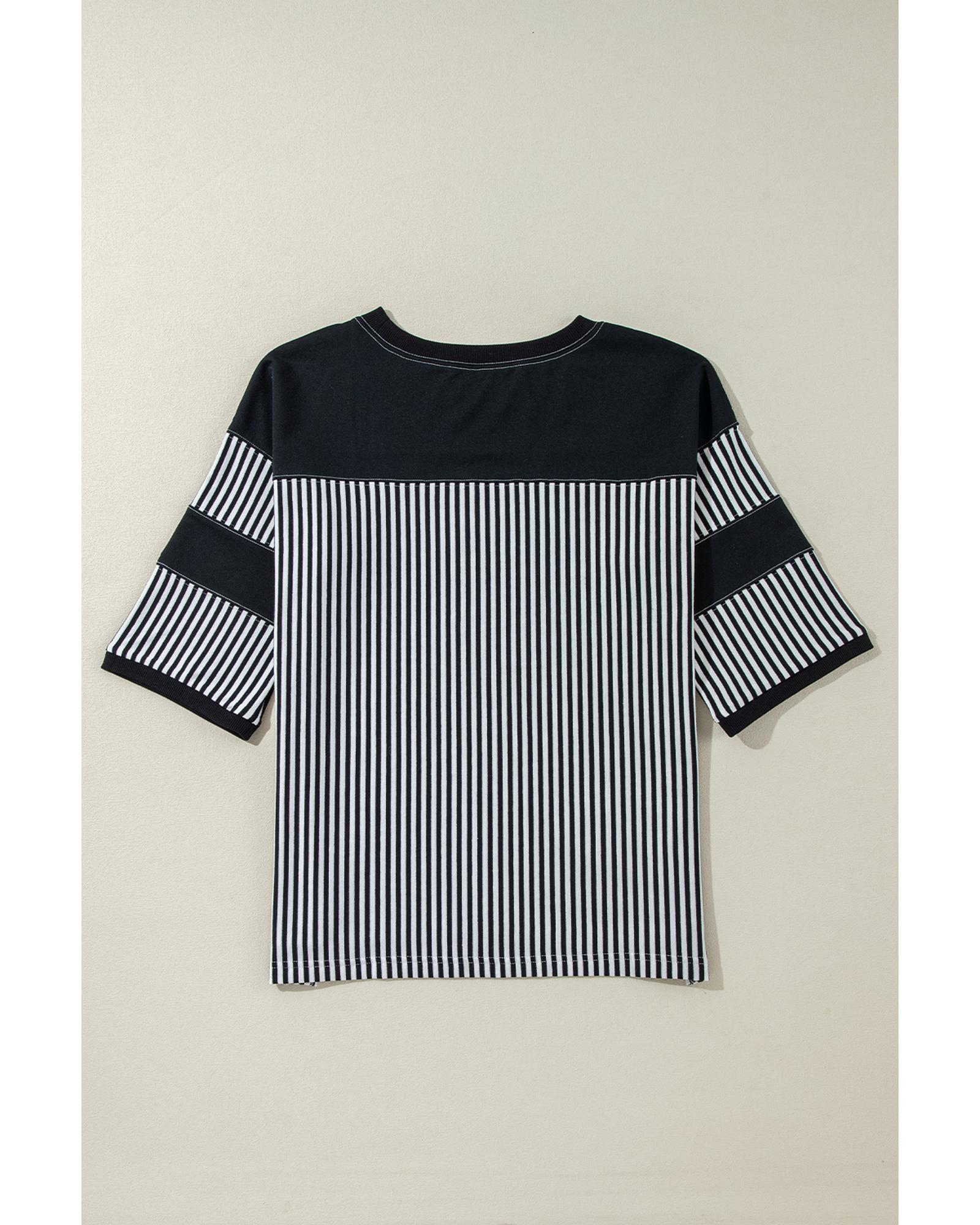 Black White Striped Patchwork 3/4 Sleeve Oversize Top – S