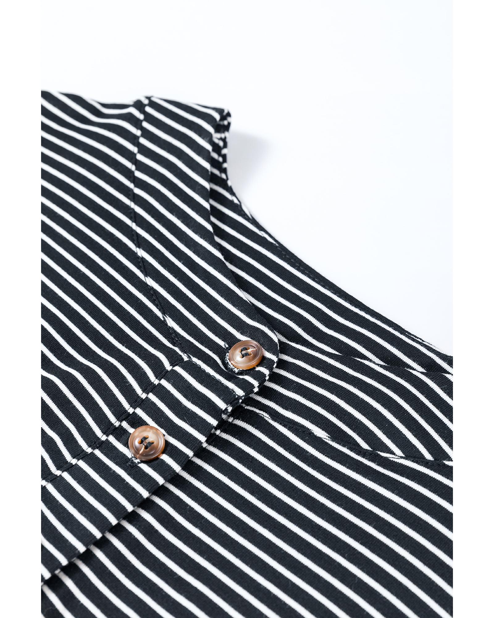 Black white Striped Print Buttoned Wide Leg Sleeveless Jumpsuit – XL