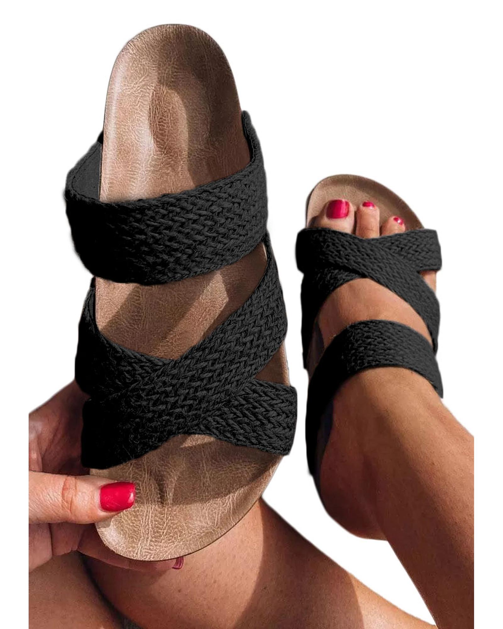 Black Woven Cross Criss Hollowed Slip-On Slippers – 37 EU