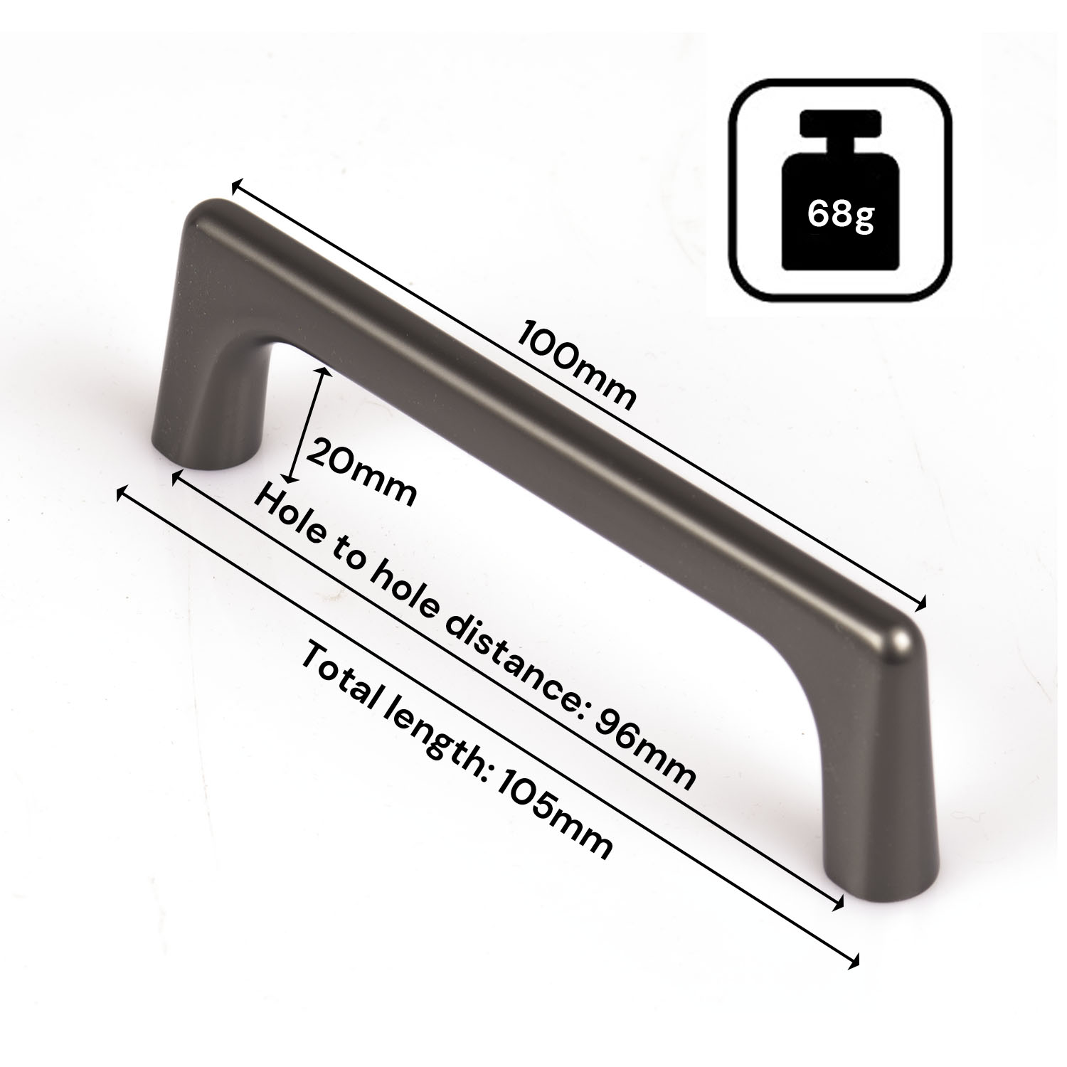 Black Zinc Kitchen Cabinet Handles Drawer Bar Handle Pull 96mm