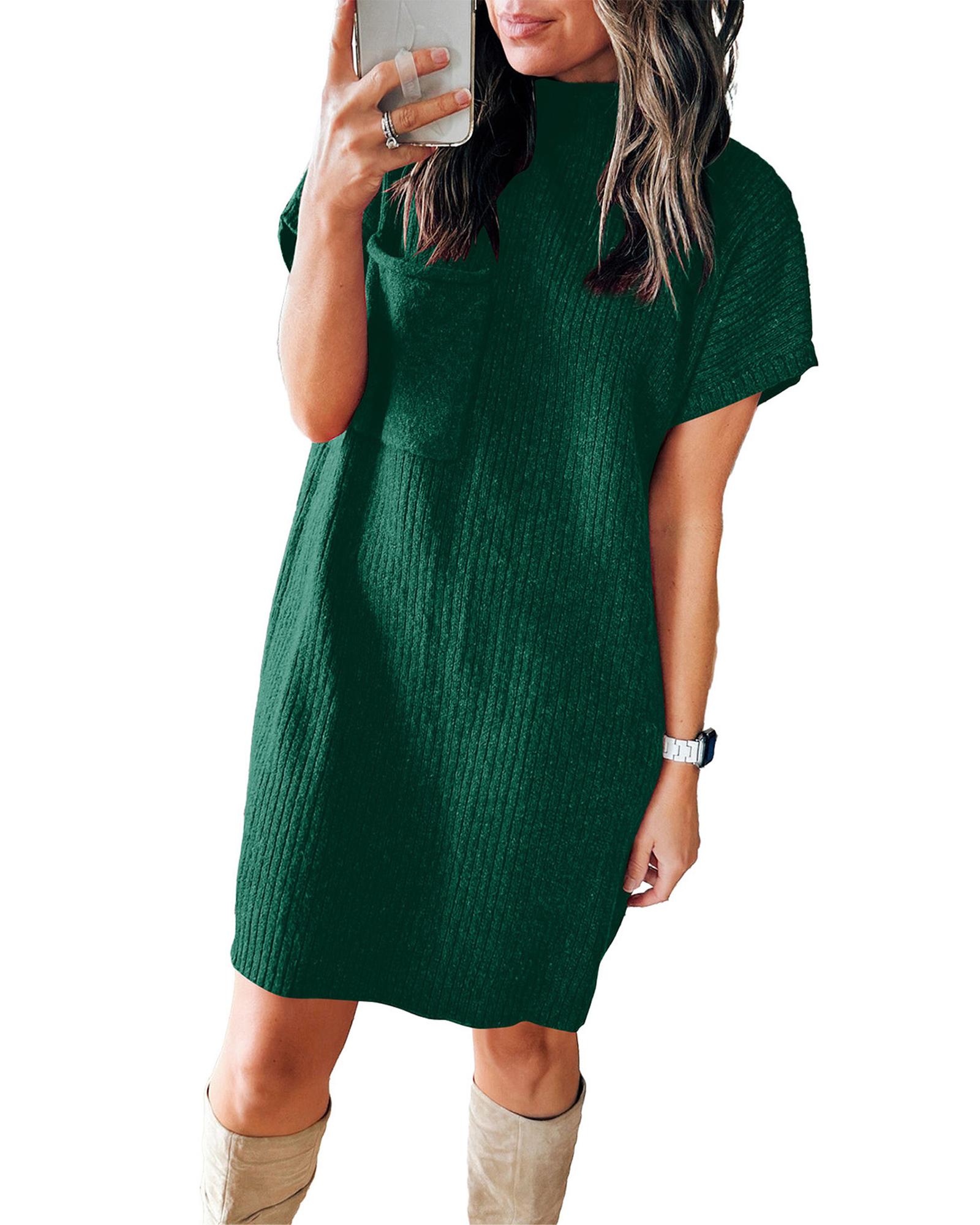 • Blackish green patch pocket ribbed knit short sleeve sweater dress