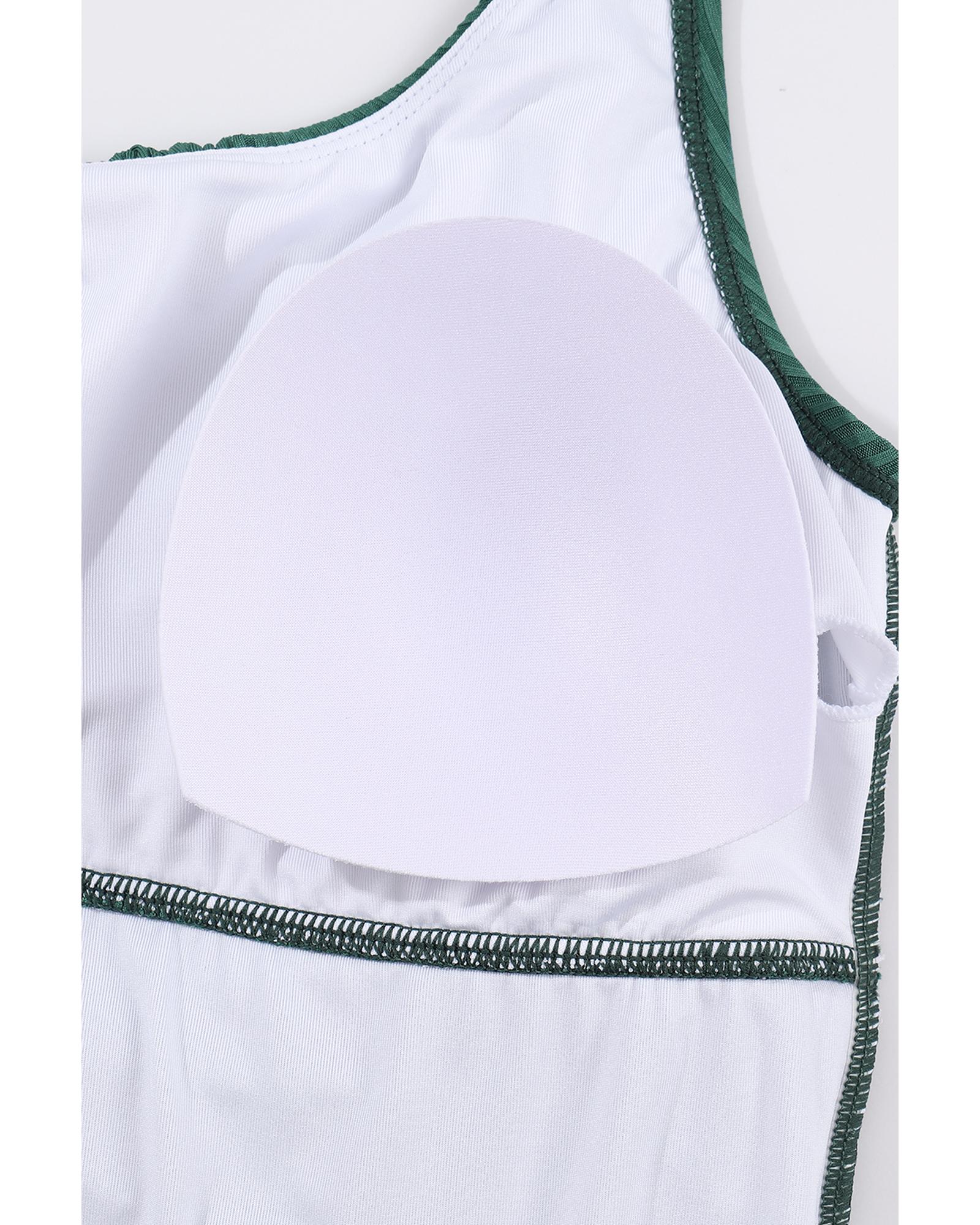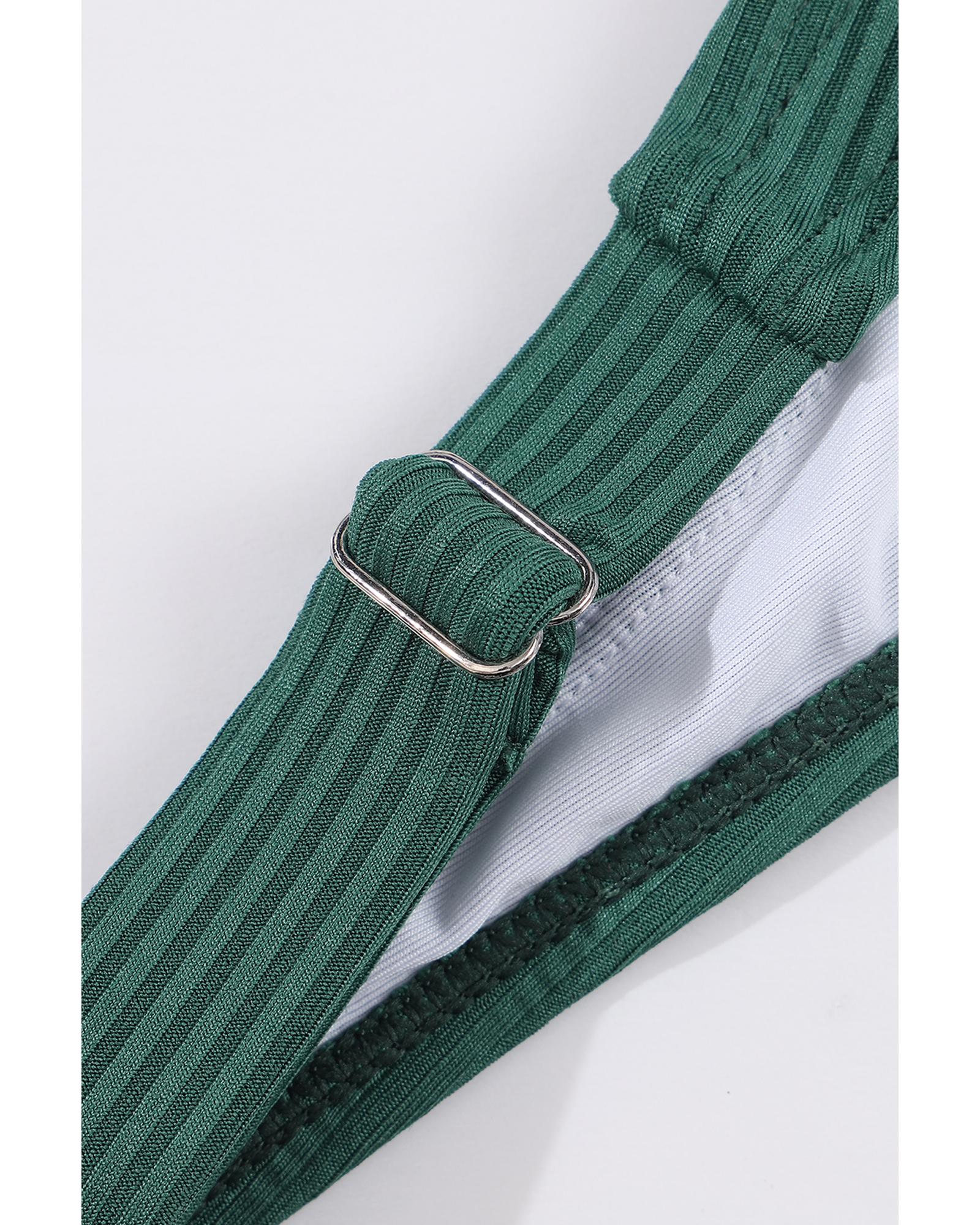 Blackish Green Ruched U Neck Ribbed Tankini – L
