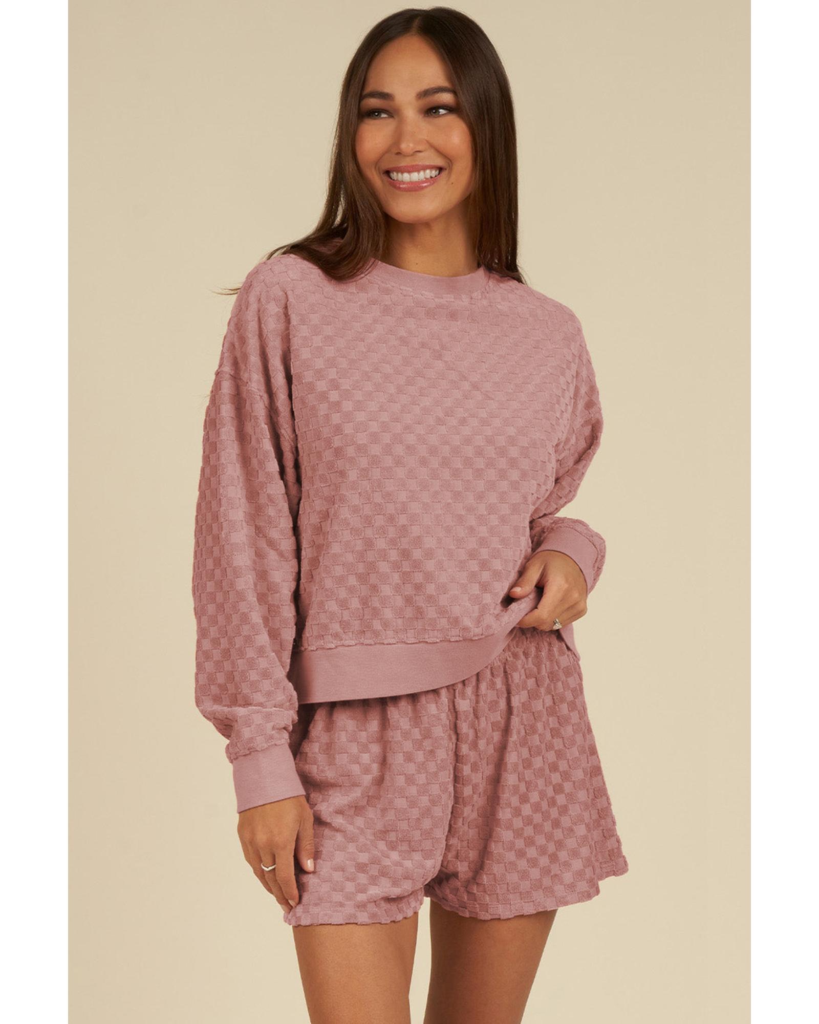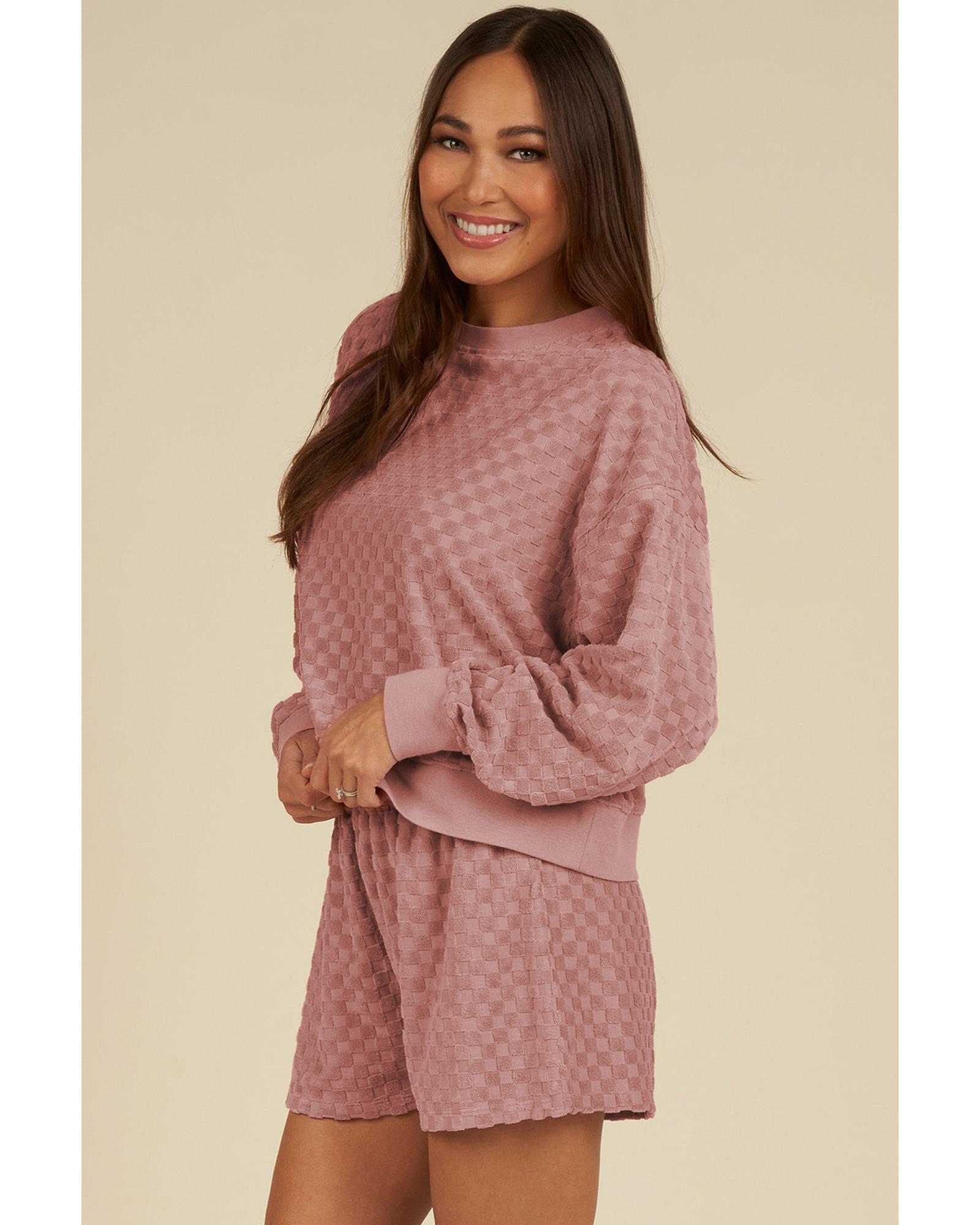 Blossom Checkered Textured Long Sleeve Top and Shorts Set – XL