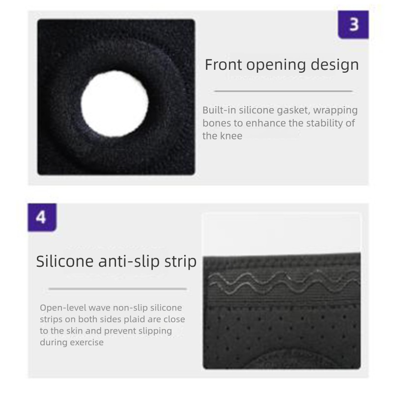 - Open Patella Design with Padding: Features an open front design with a built-in EVA/silicone gel pad ring that surrounds the kneecap (patella), relieving pressure and improving stability and tracking.