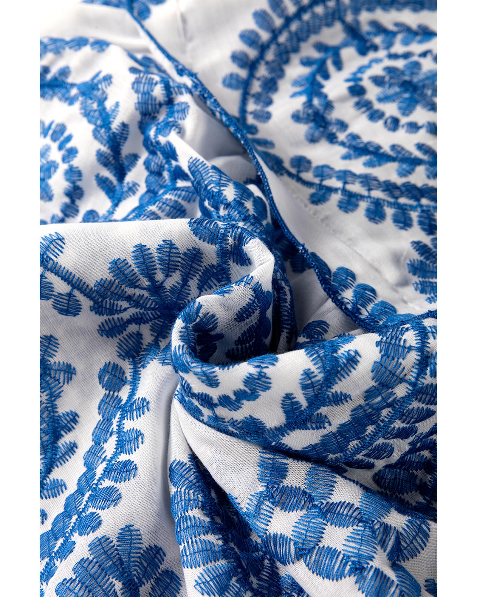 Blue Boho Print Flutter Sleeve Crew Neck Blouse – M