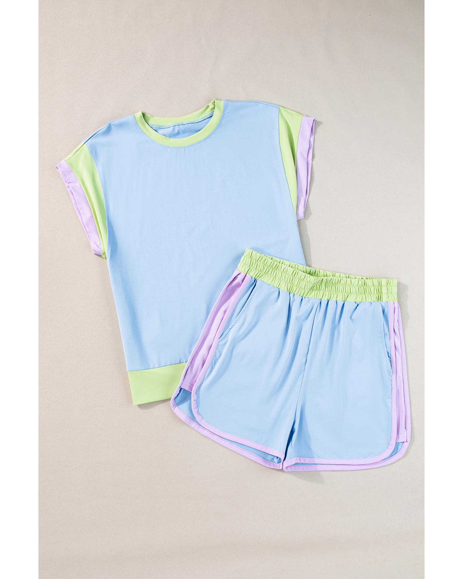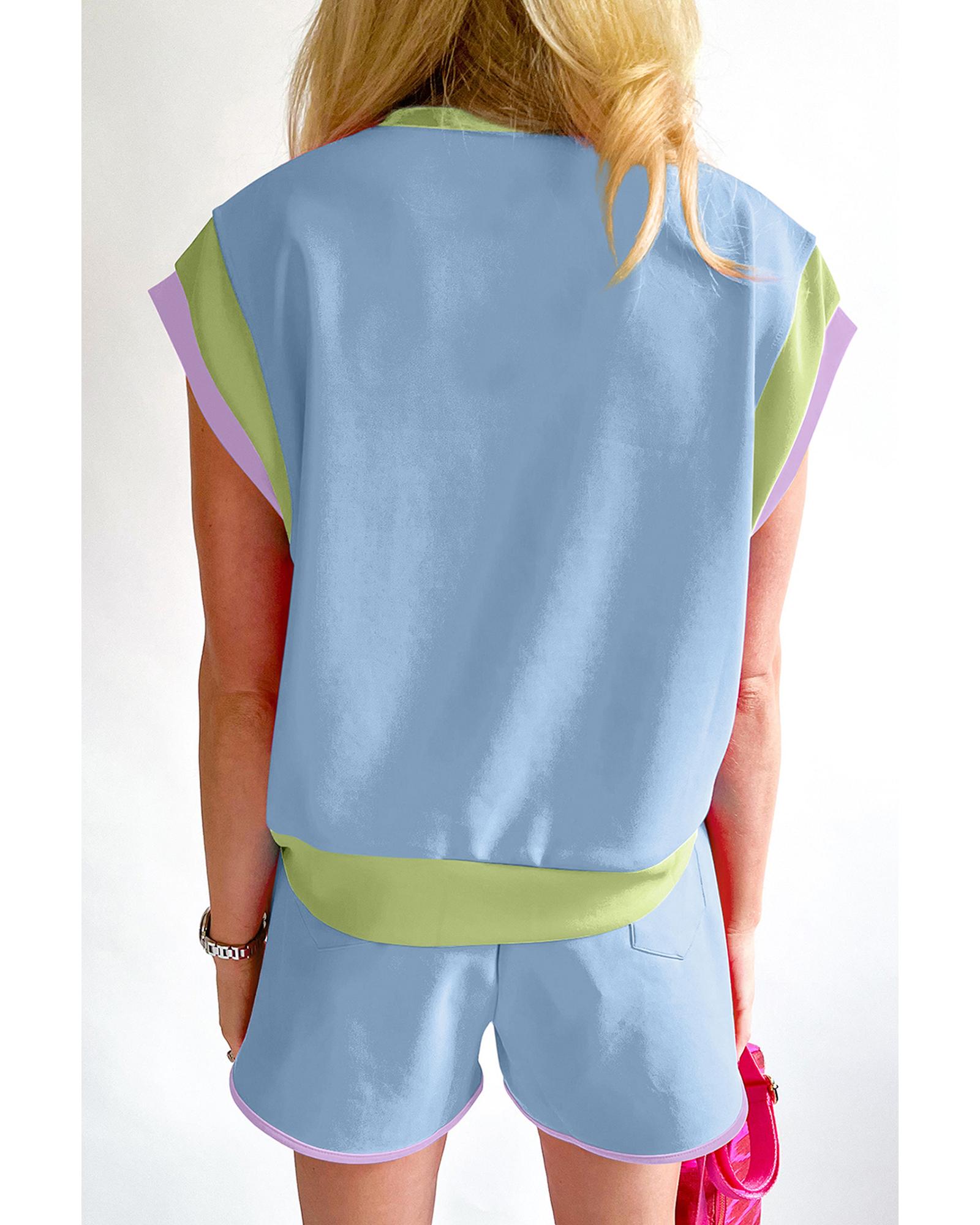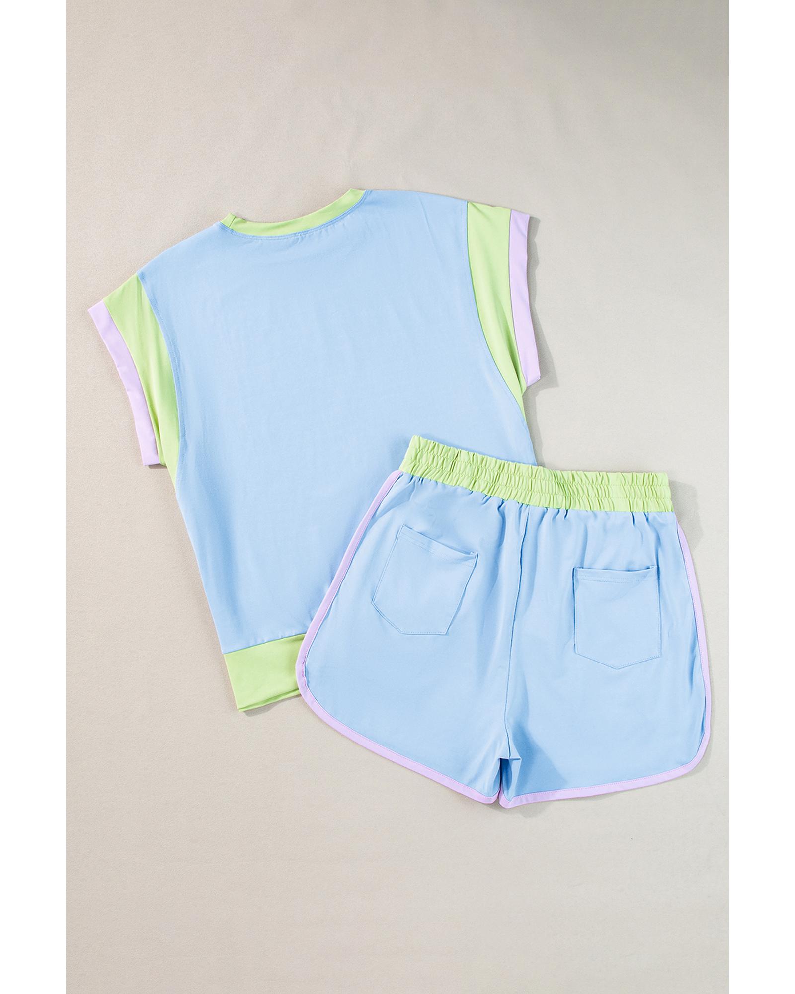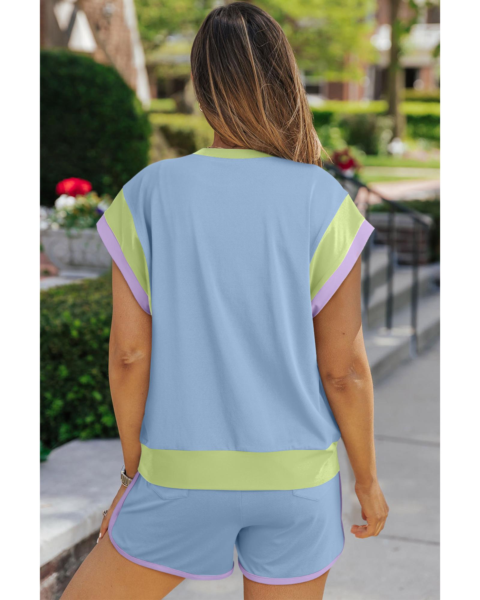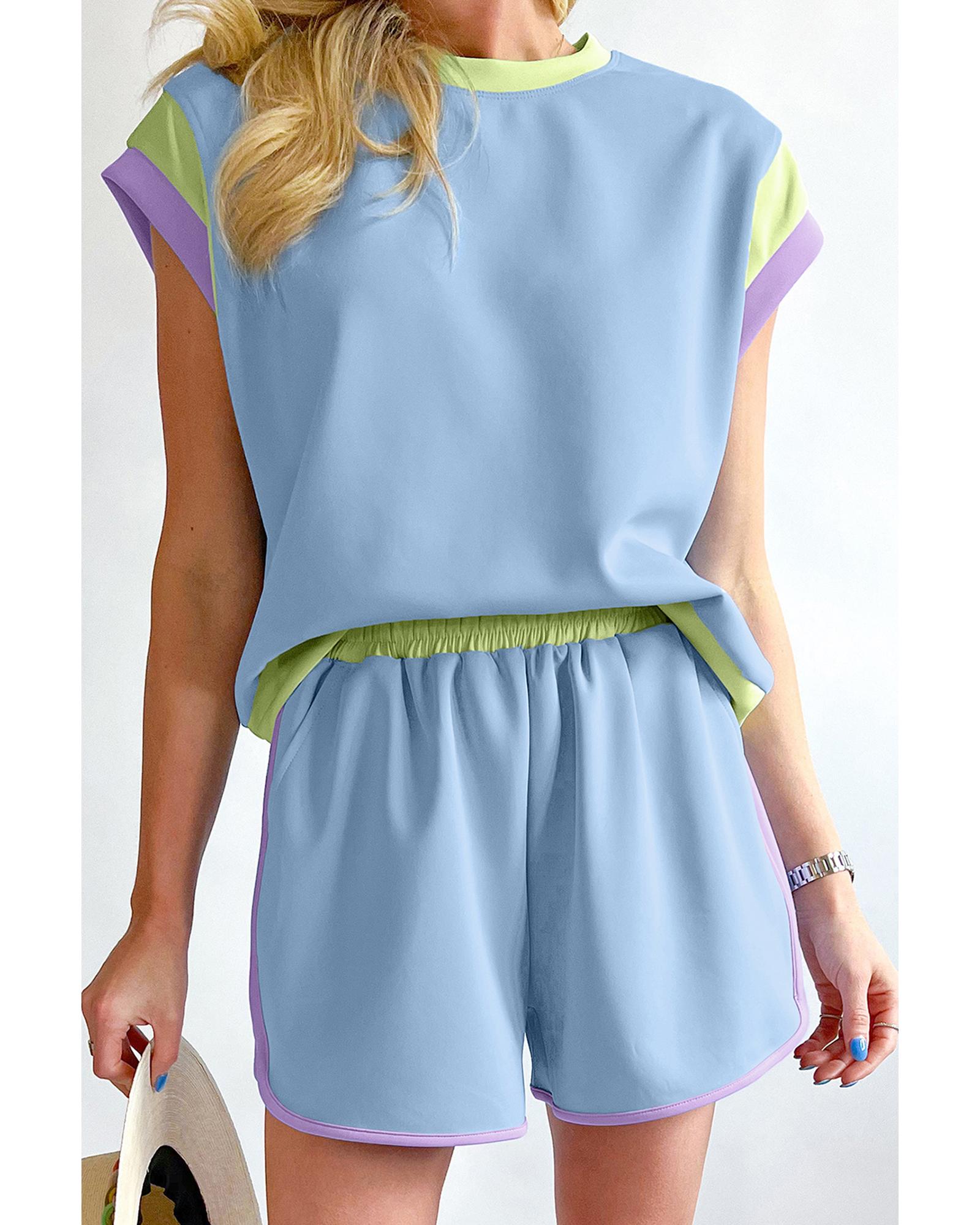 Blue Contrast Trim Cap Sleeve Tee Shorts Set – S