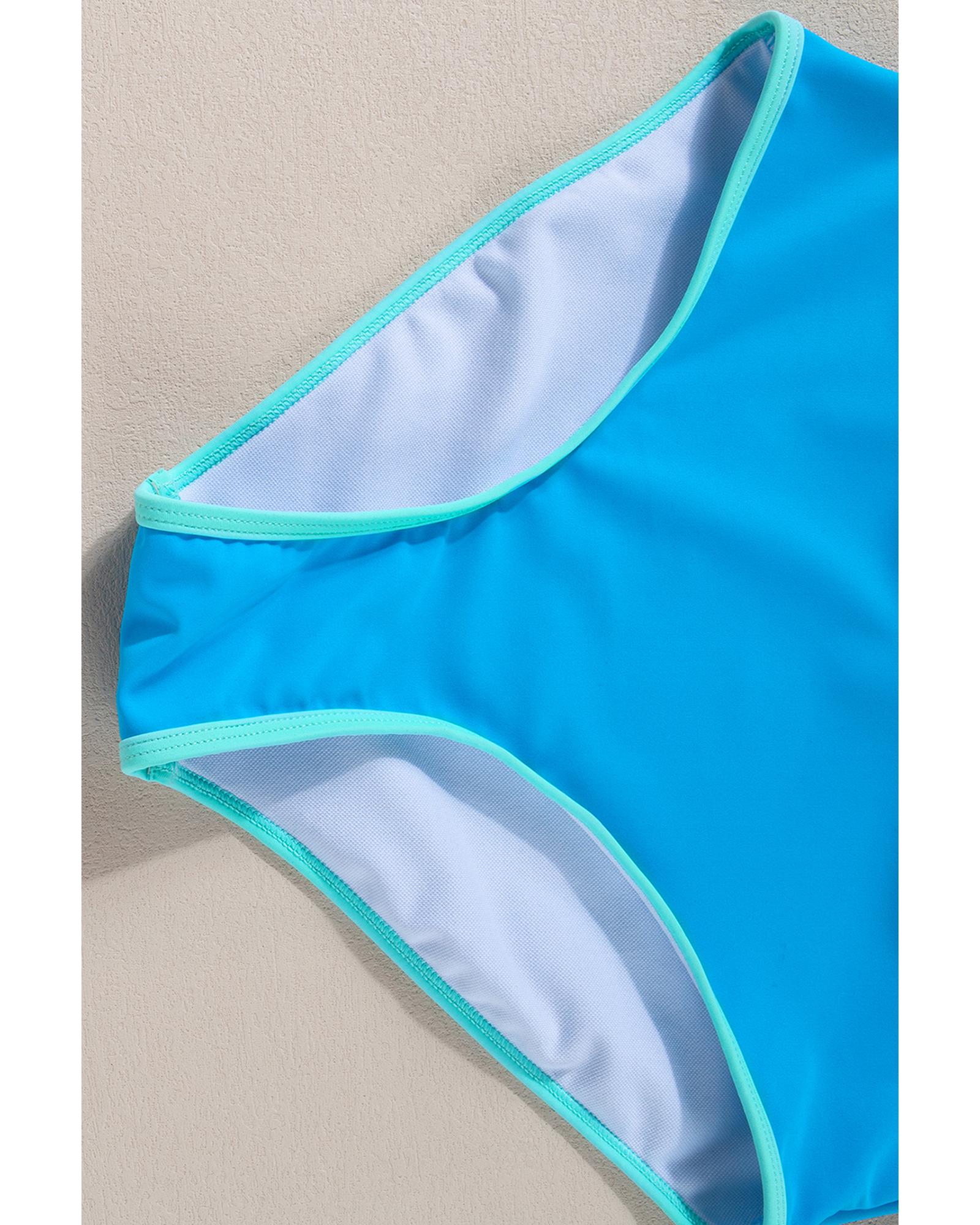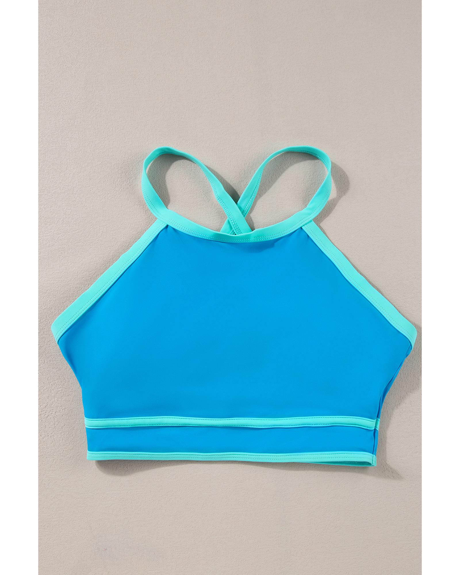 - Blue Contrast Trim Crisscross Back High Waisted Bikini