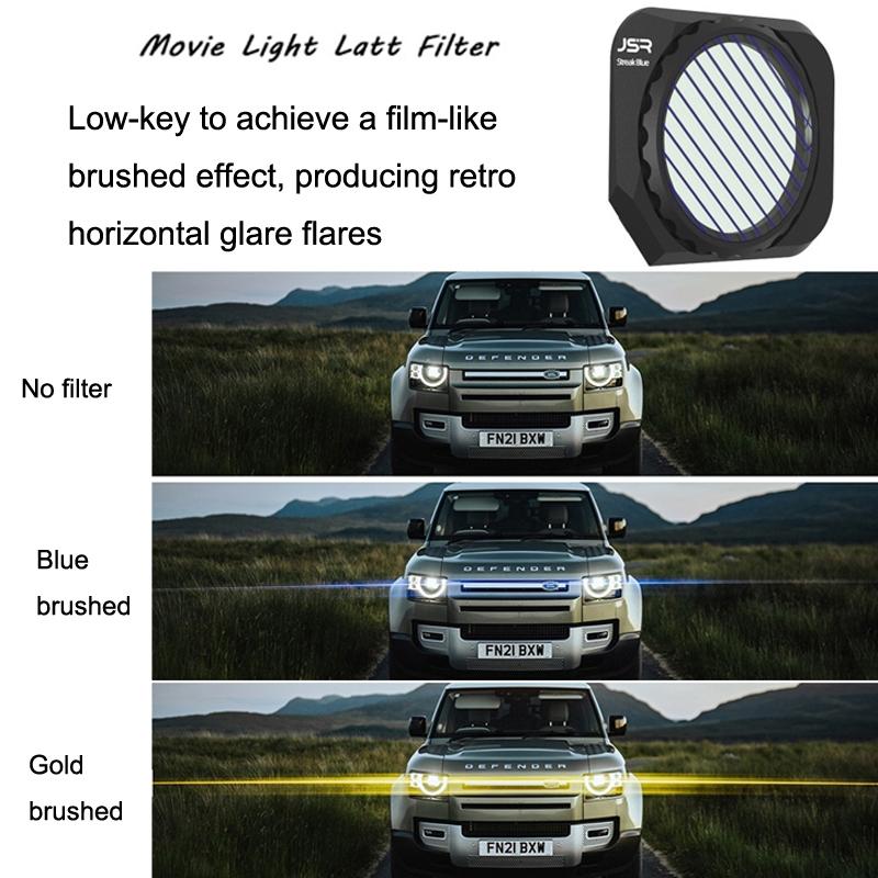 • Brushed filter: low-key to achieve a film-like brushed effect, producing retro horizontal glare flares