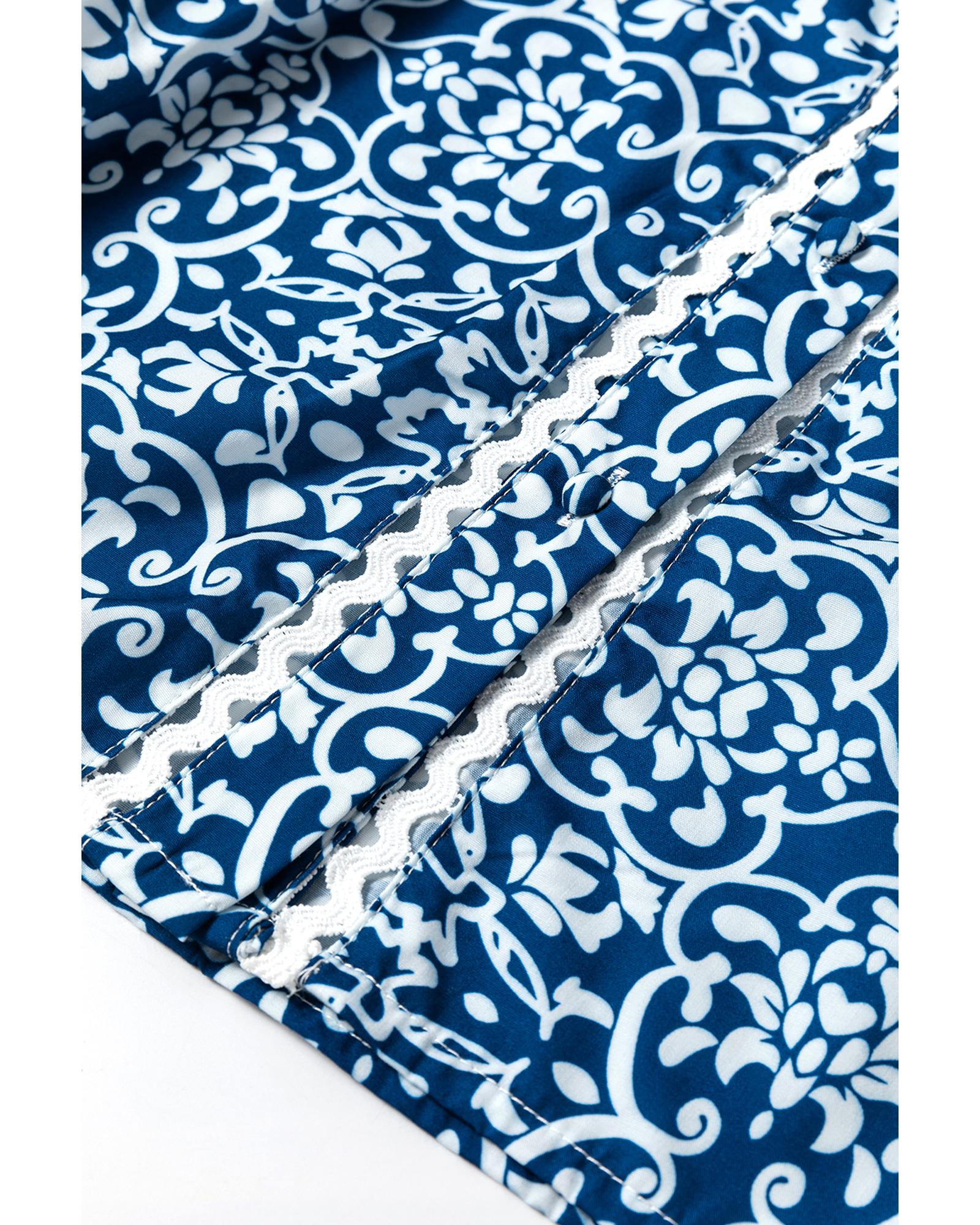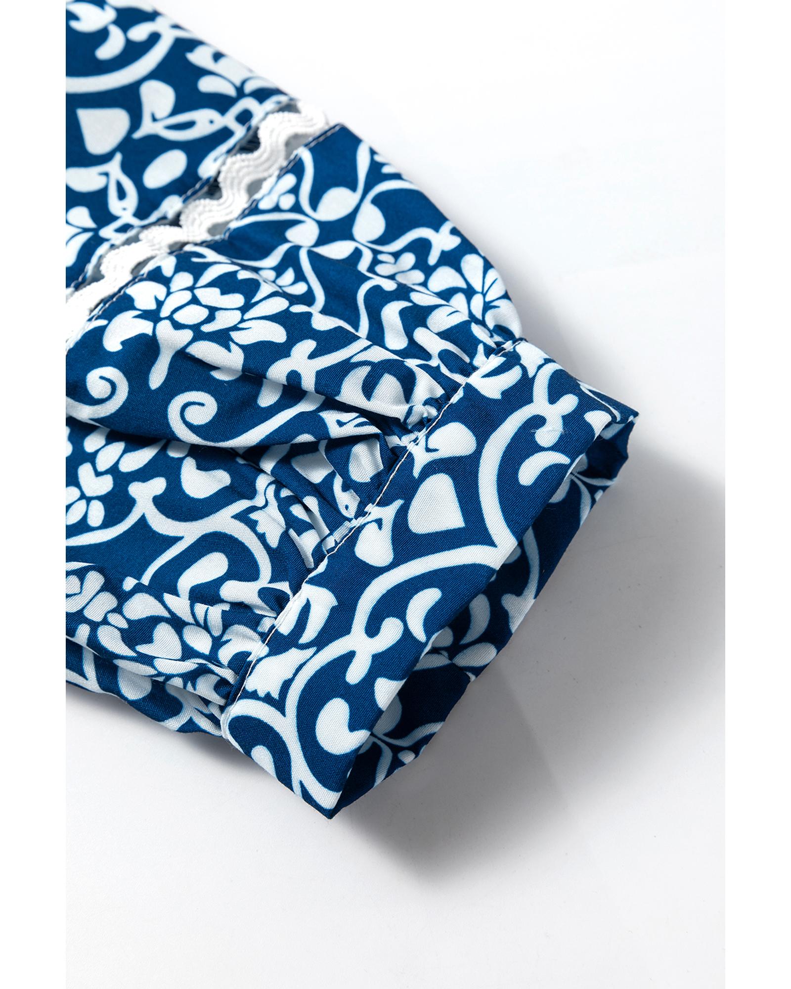 Blue Floral Ric-rac Patchwork Button Loose Fit Shirt – XL