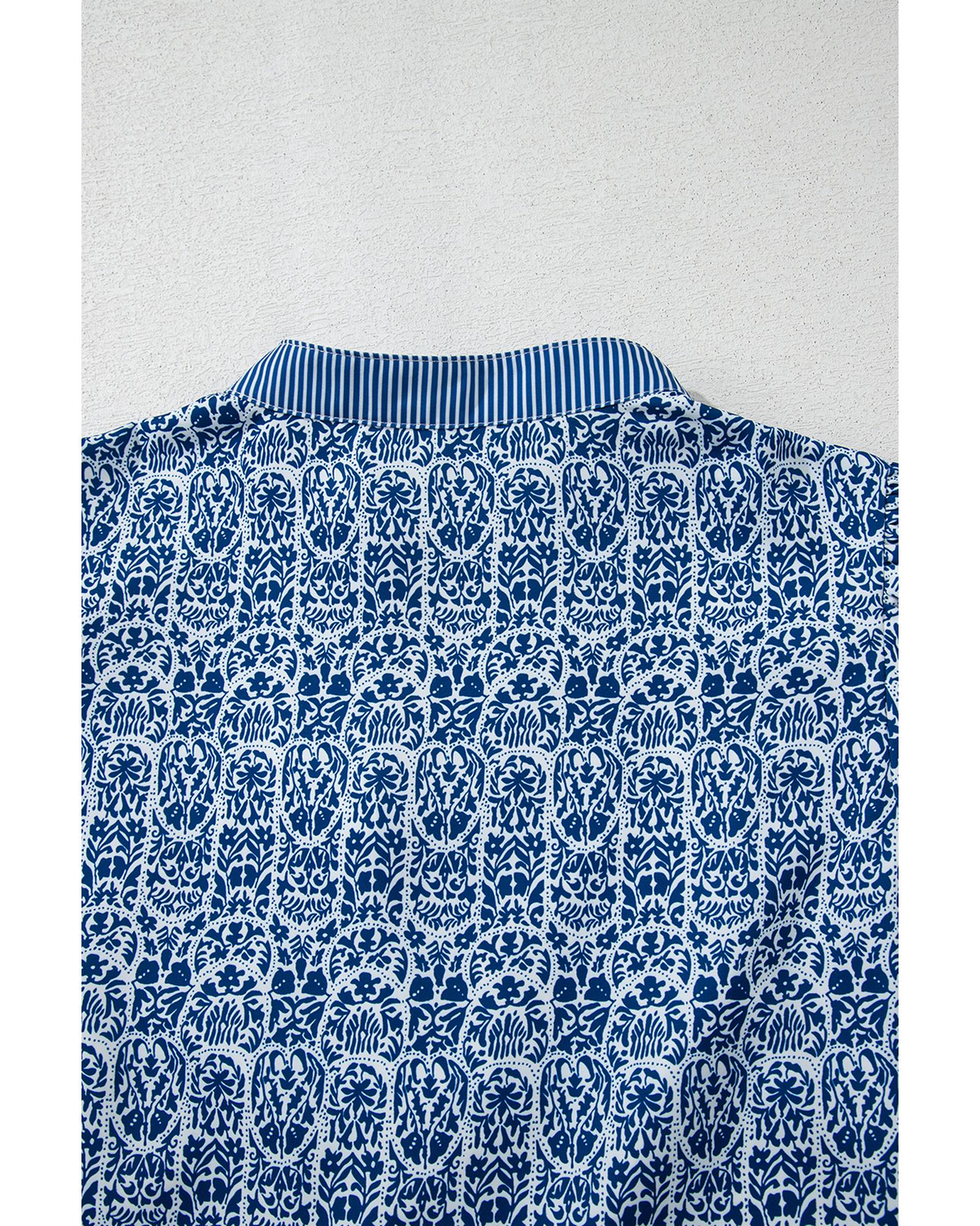 - Blue floral and striped print