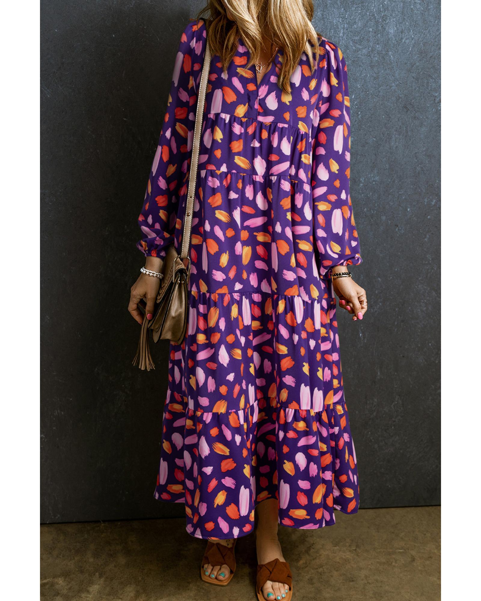 Blue Petal Collared Tiered Flowy Long Dress – XL