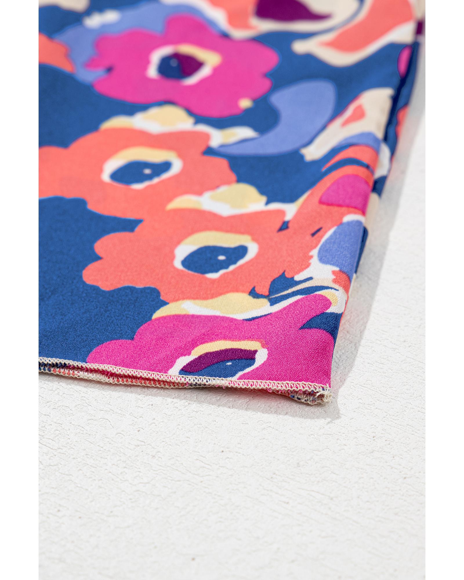 Blue Plus Size Floral Print Ruffled 3/4 Sleeve Mini Dress – 1X