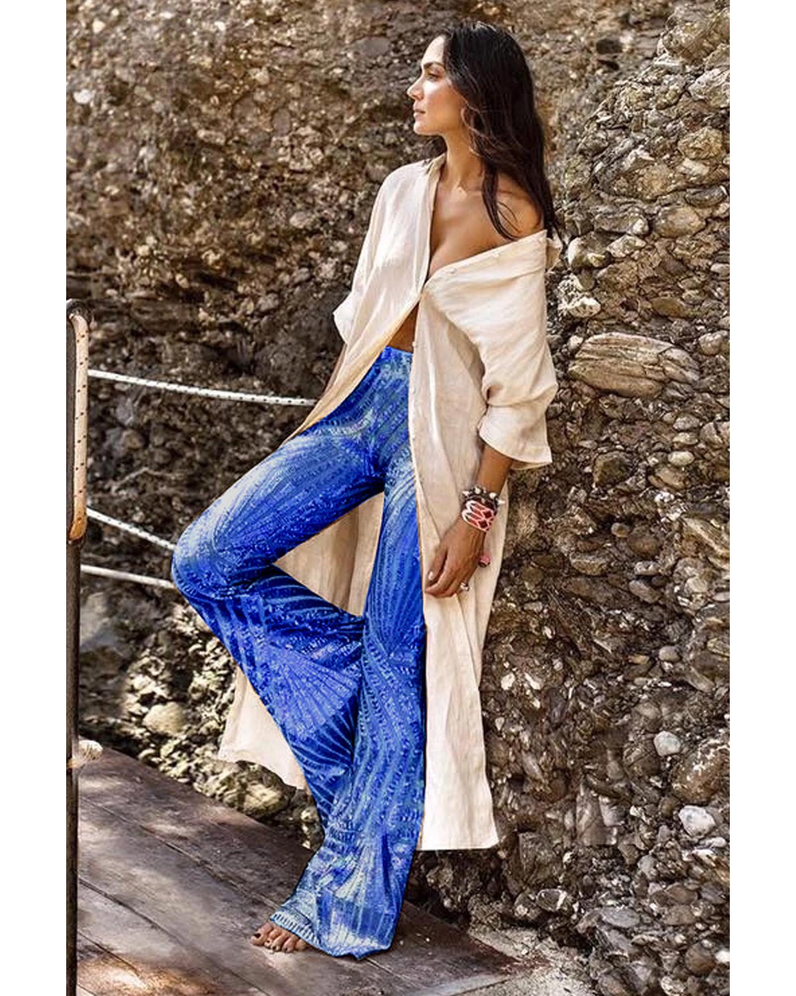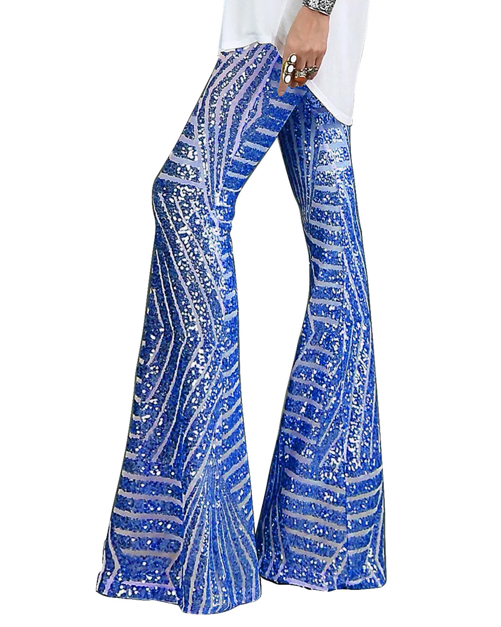 Blue Sequin Wide Leg Pants – L