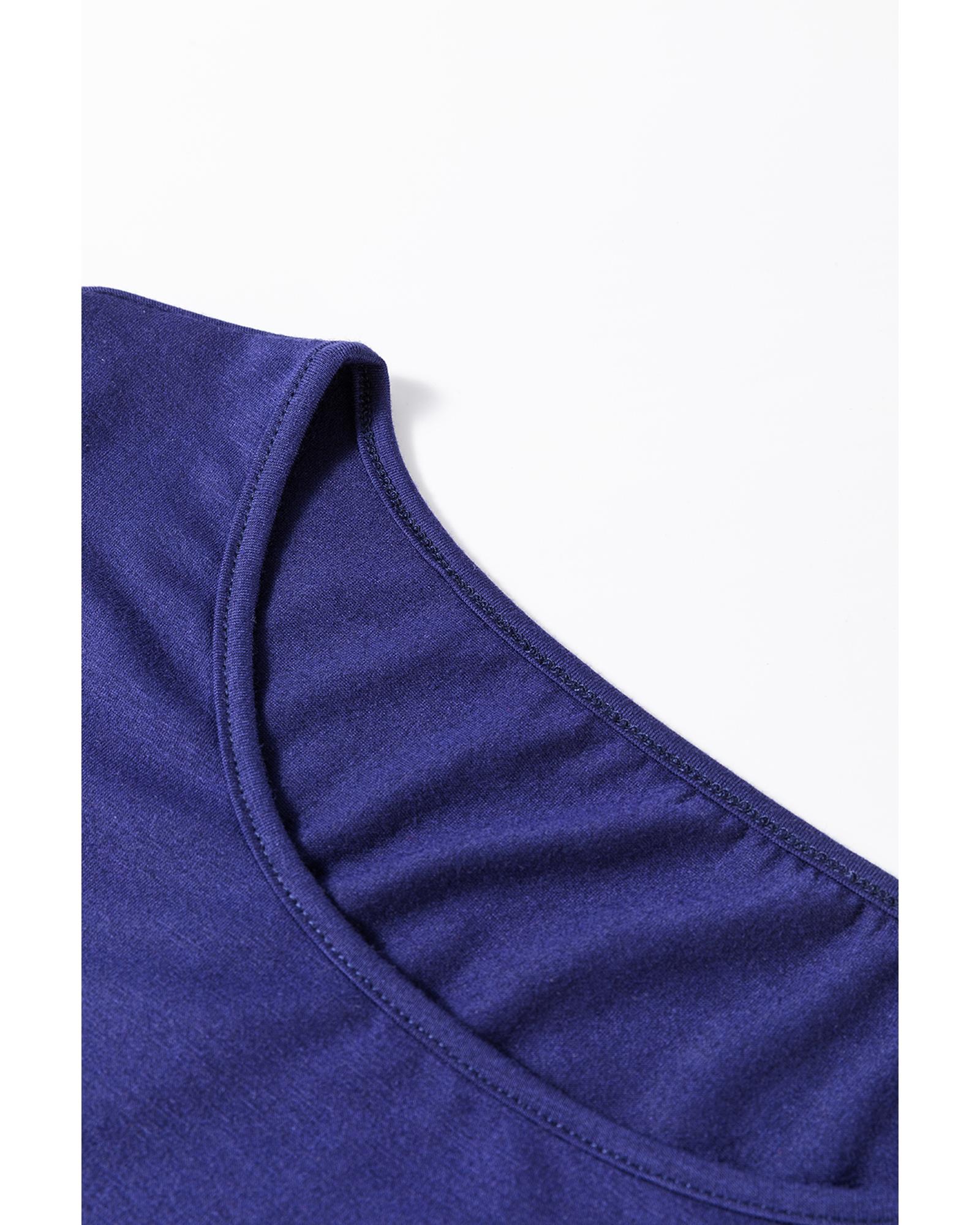 Blue Solid Top and Christmas Pants Two Piece Lounge Set – S