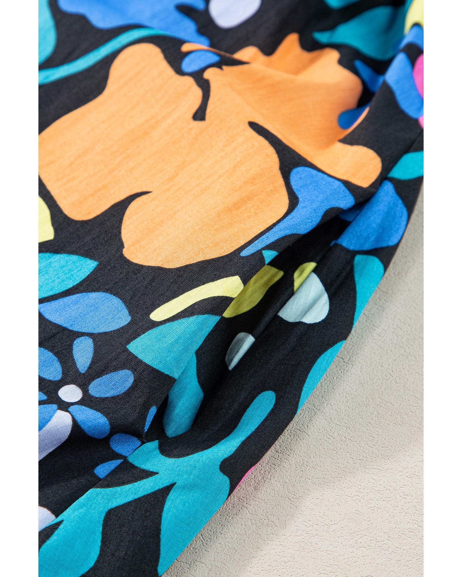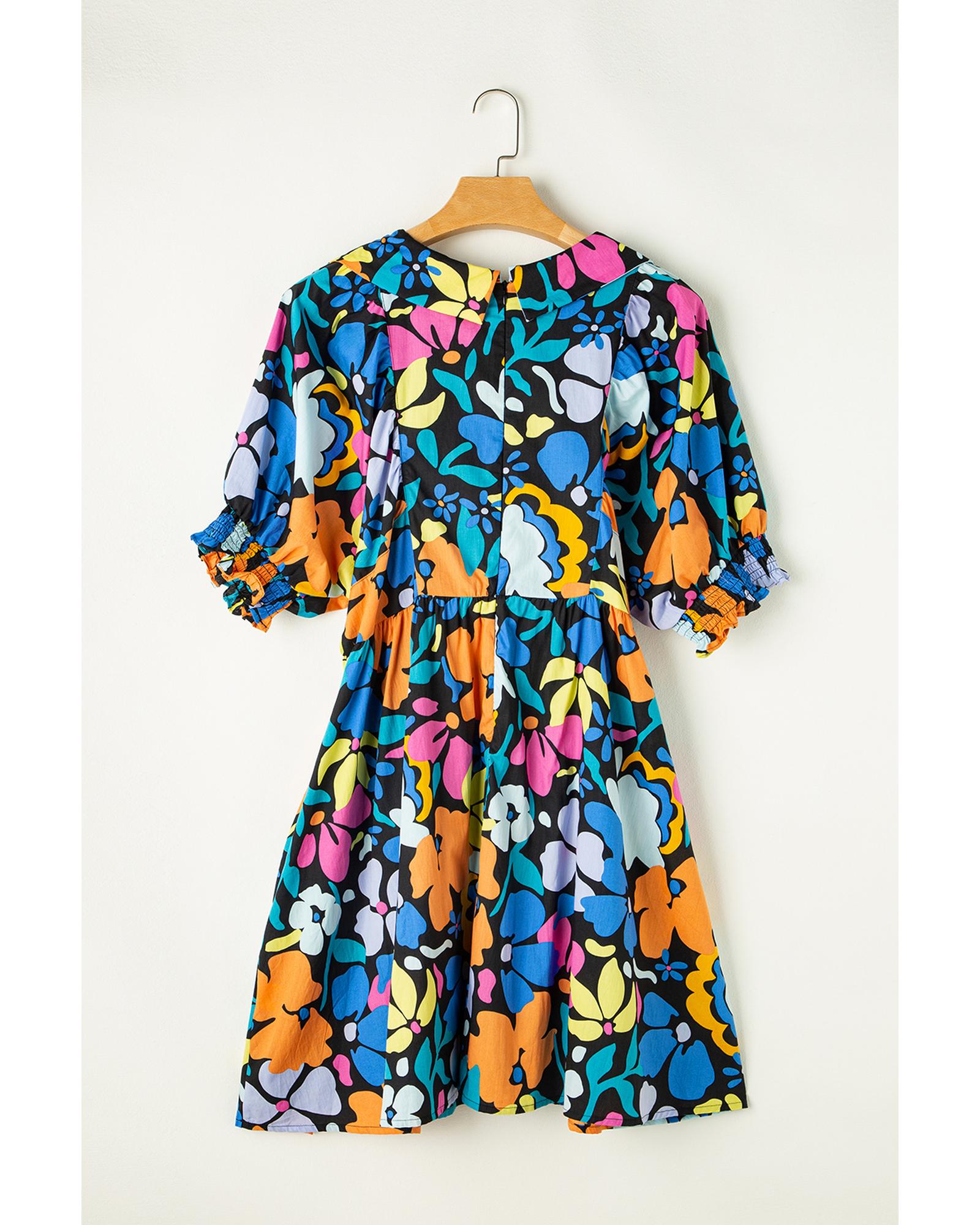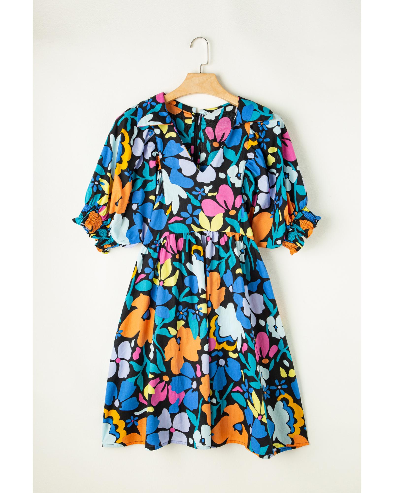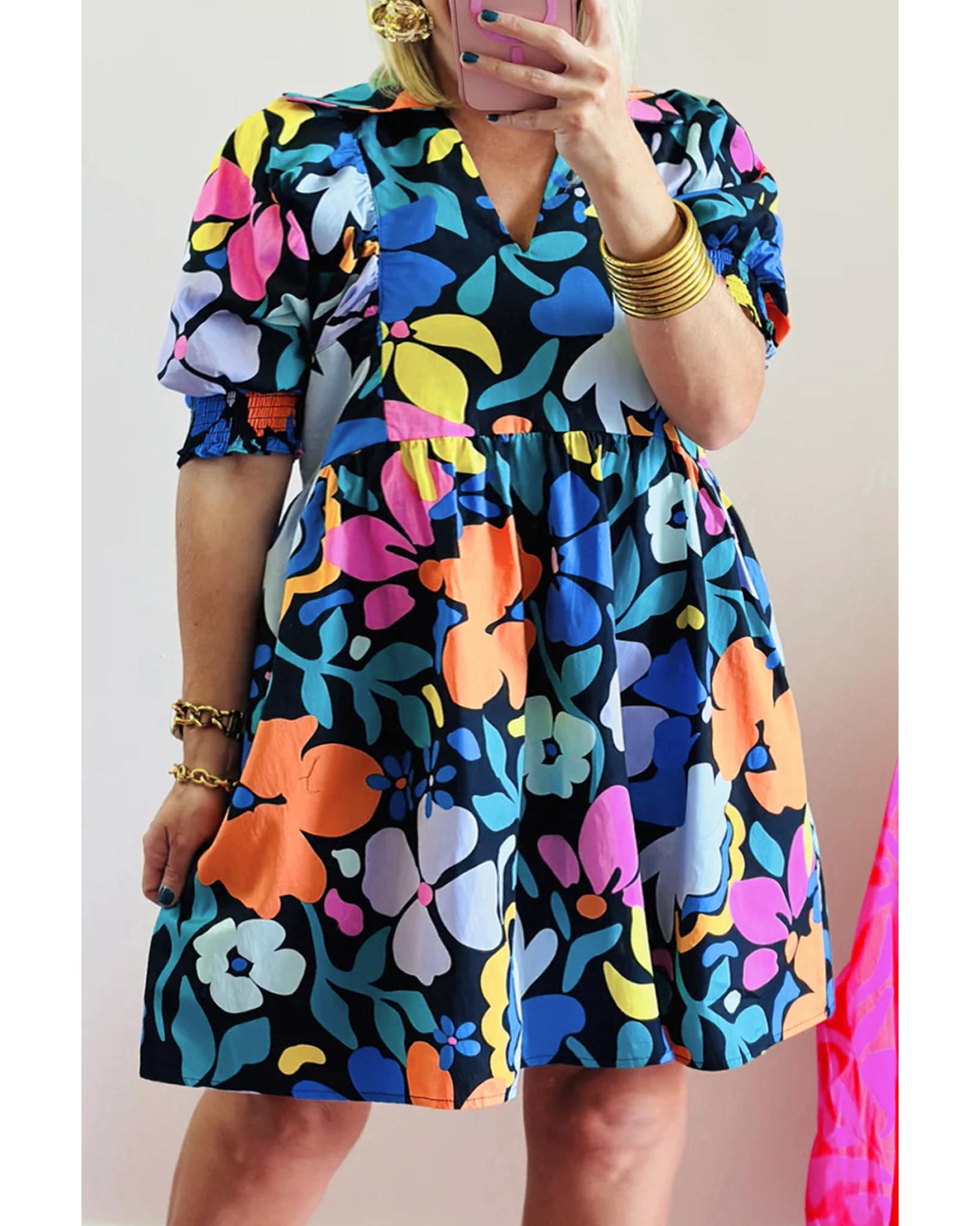 Blue Split Neck Collared Plus Floral Dress – 1X