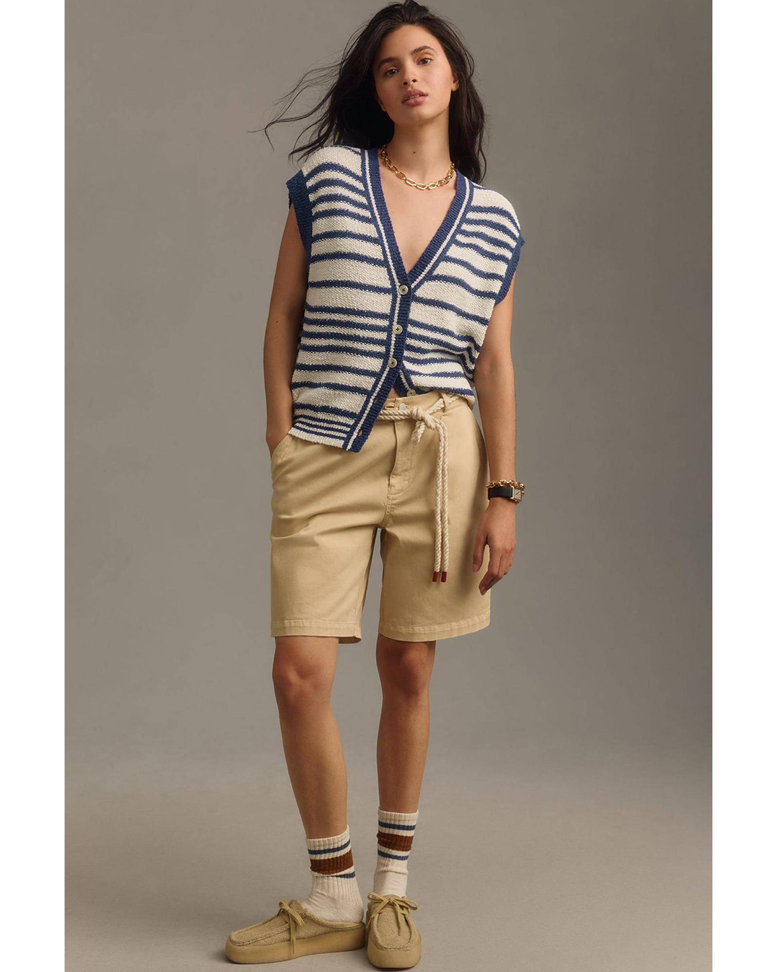 Blue Stripe Loose Buttoned V Neck Sweater Vest – S