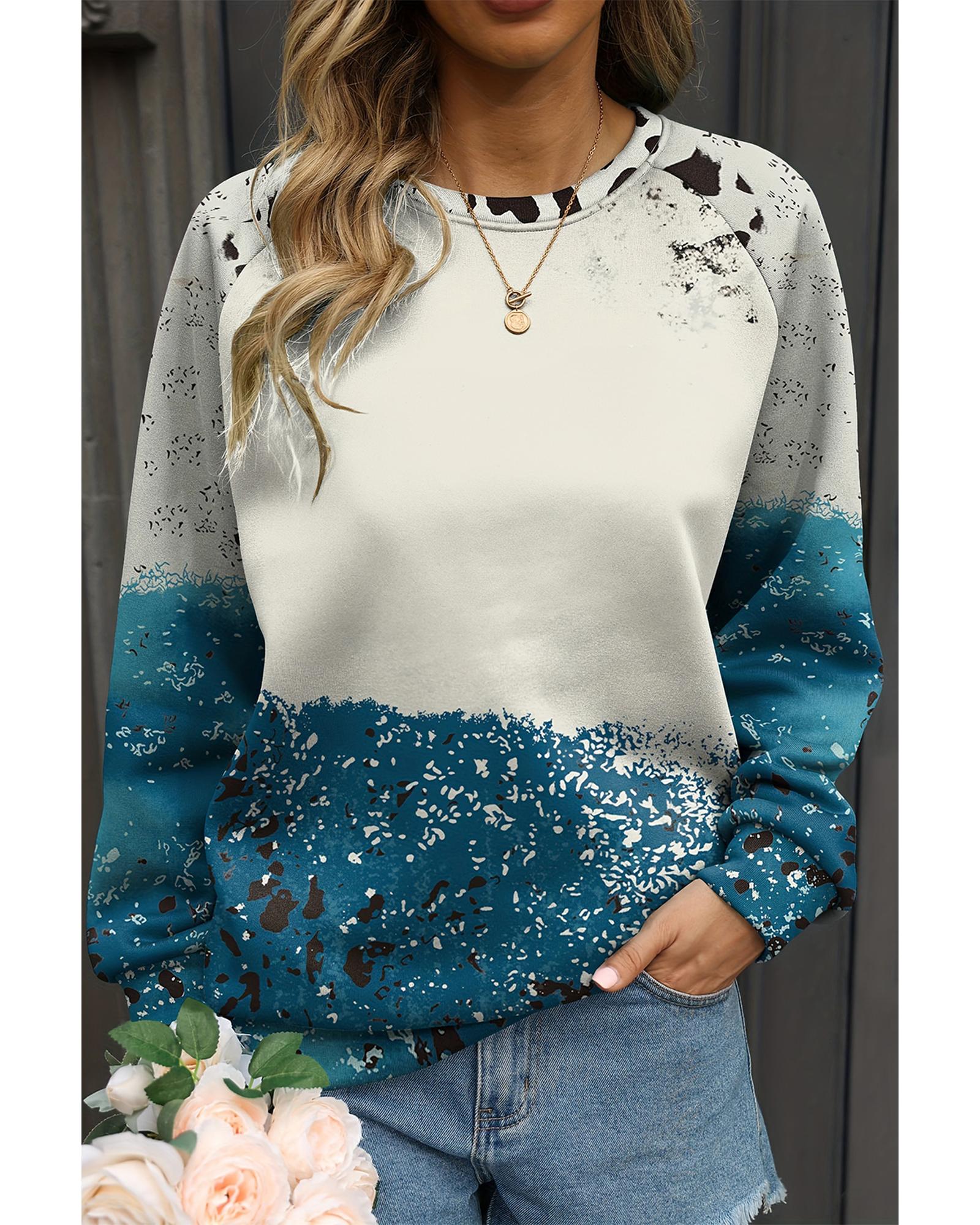 Blue Tie Dye Cow Color Block Pullover Sweatshirt – S