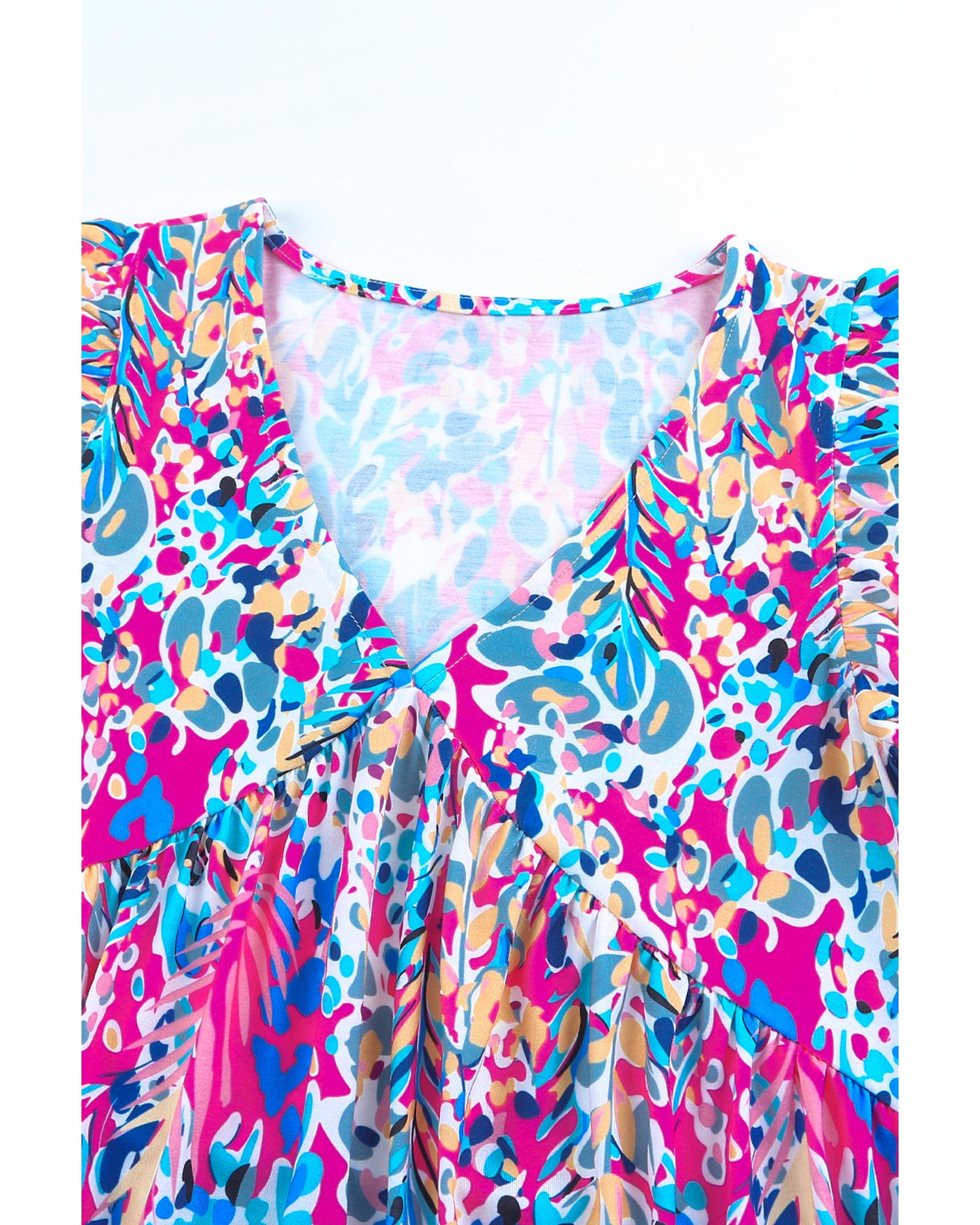 Boho Pattern Print Flounce V Neck Tank Top – L