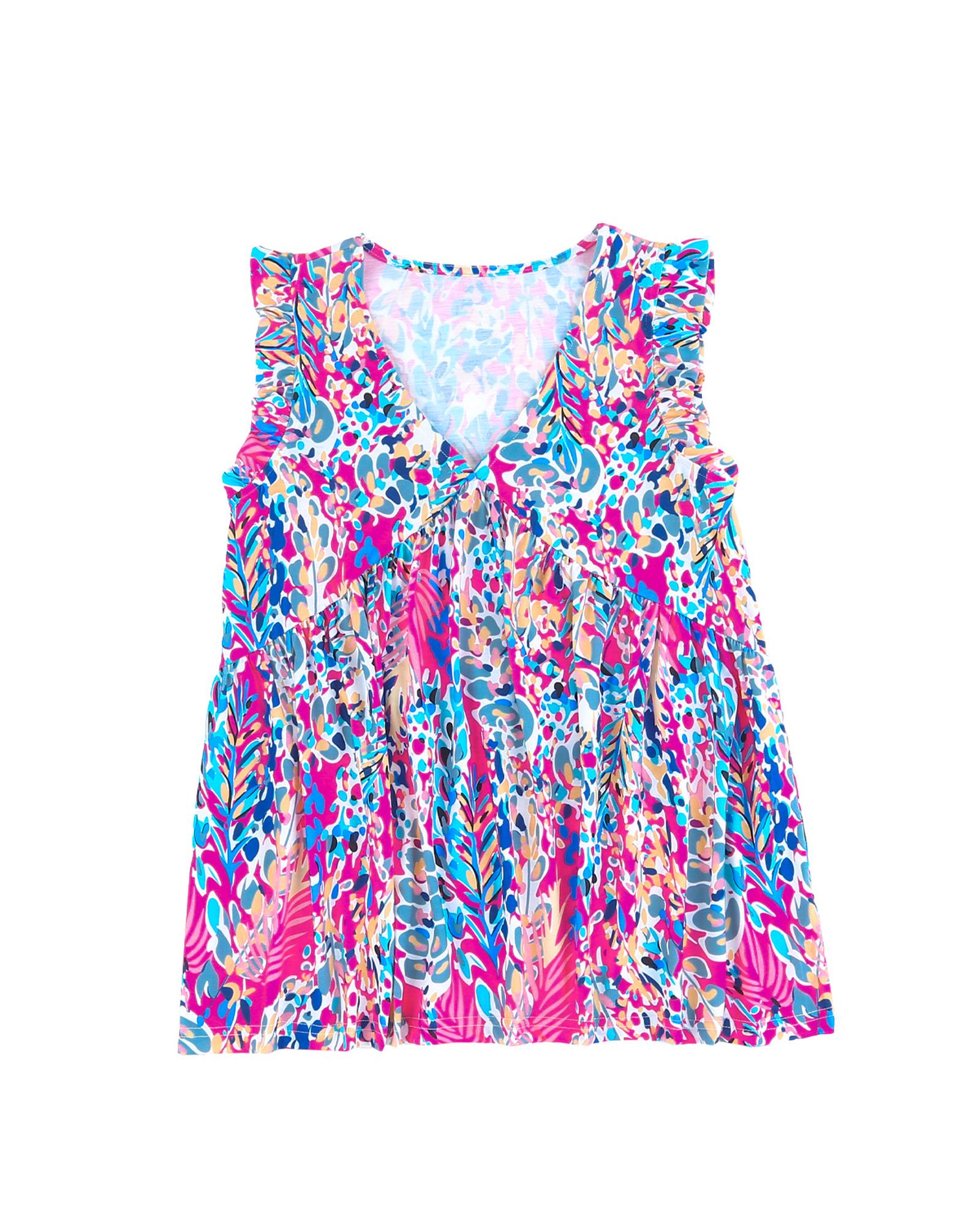 Boho Pattern Print Flounce V Neck Tank Top – M