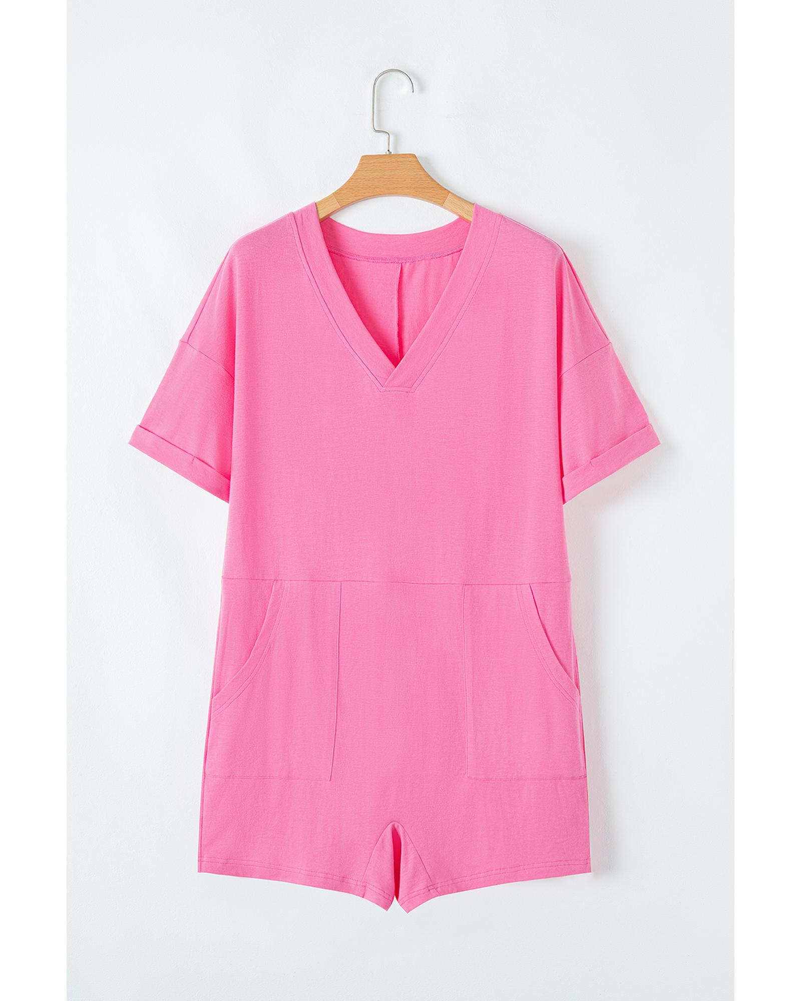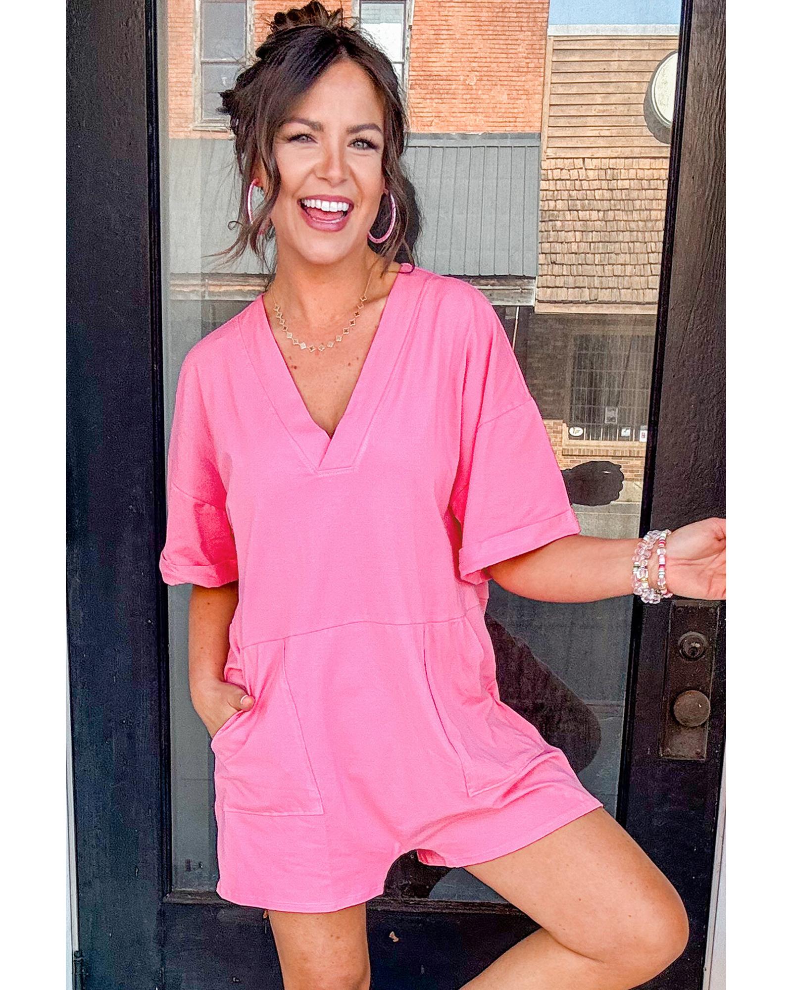 Bonbon Loose Half Sleeve V Neck Knit Romper – L