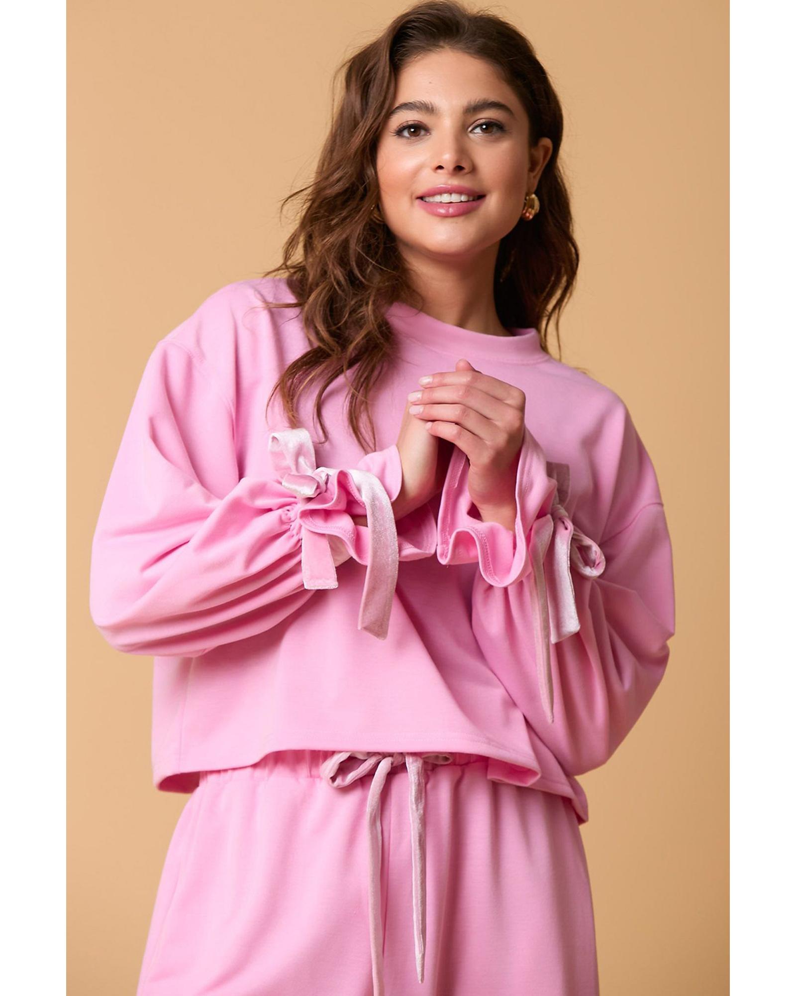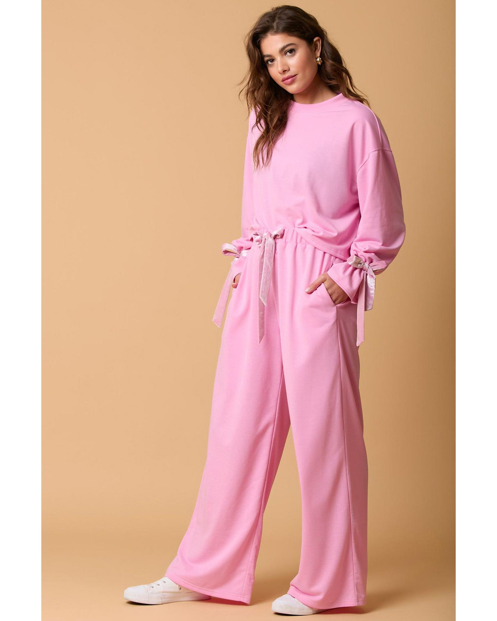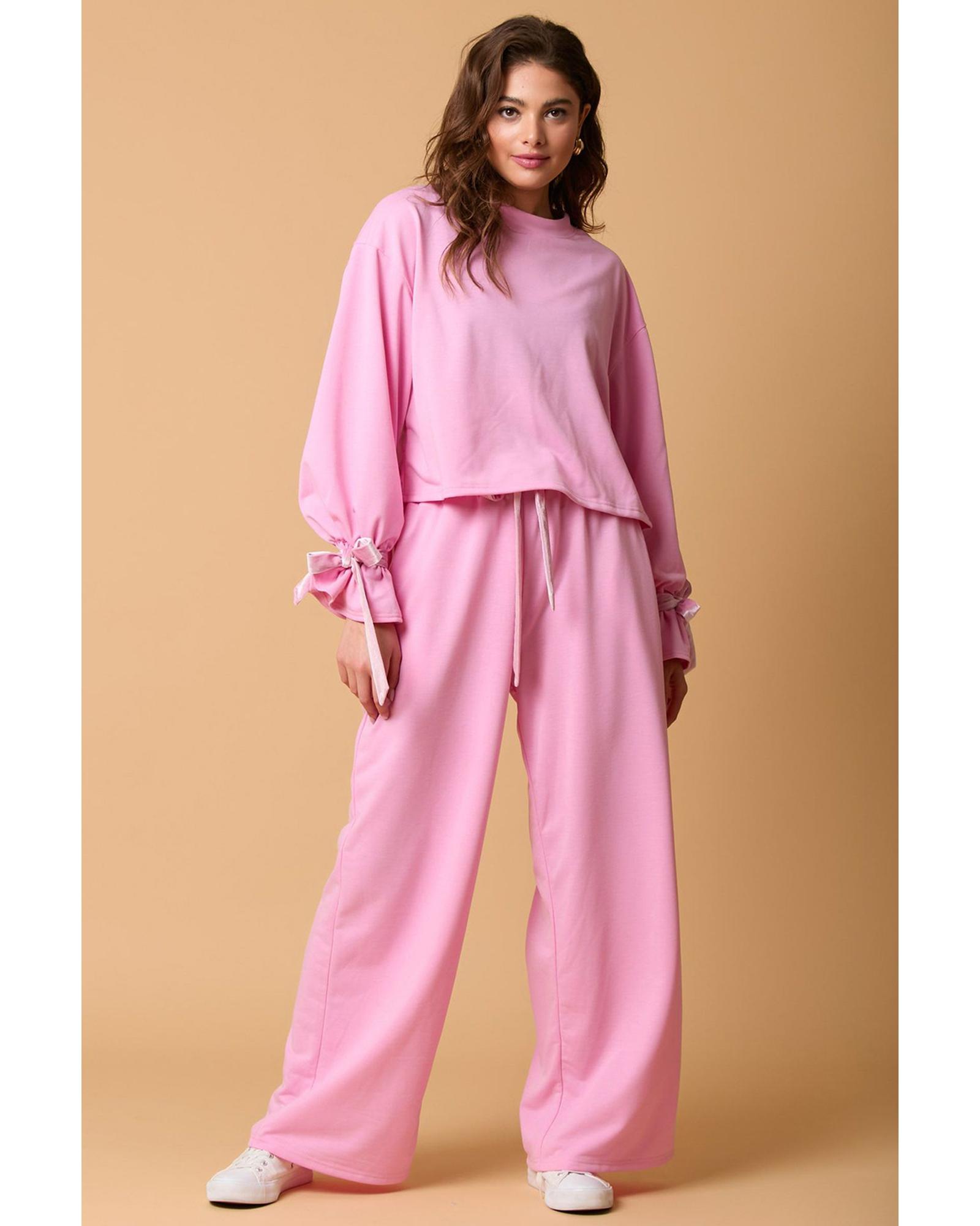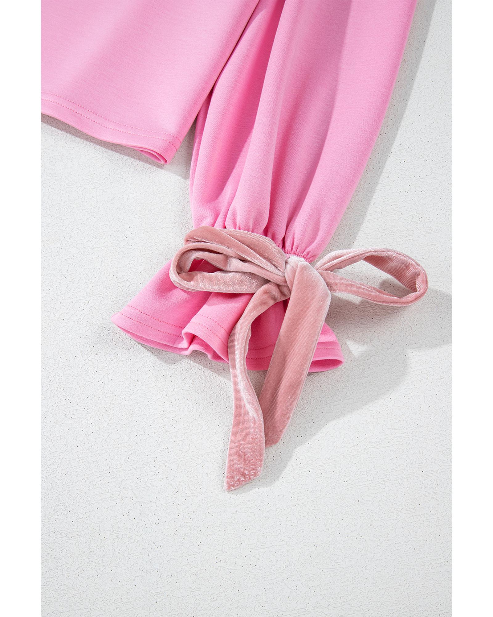 Bonbon Solid Color Drawstring Long Sleeve Top and Pants Set – XL