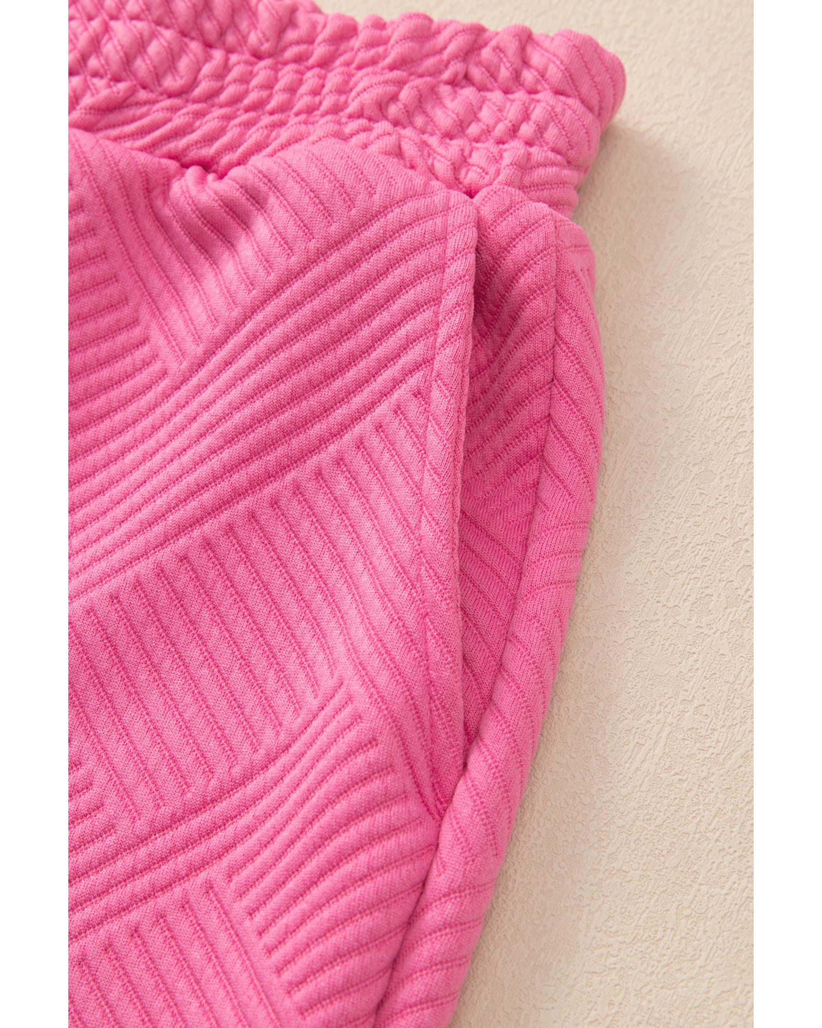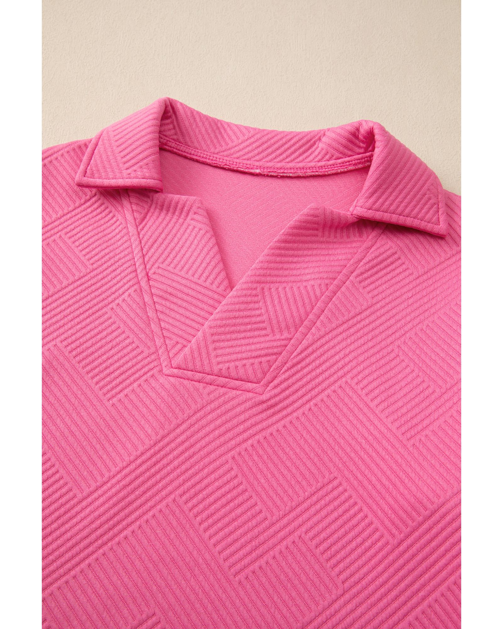 - Bonbon Solid Textured Collared V Neck Top and Wide Leg Pants Set