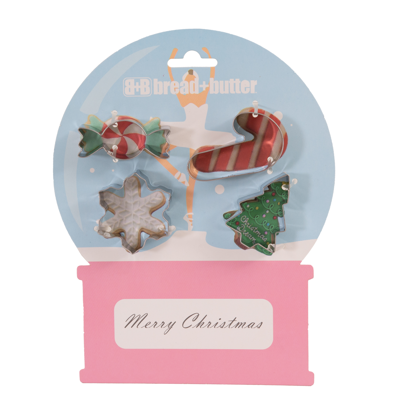Bread and Butter Cookie Cutter – Snowglobe, Card, Tree, Candy Cane – 4 Pack