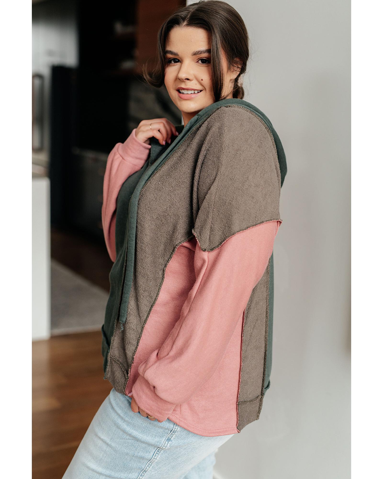 Breen Plus Size Colorblock Patchwork V Neck Hoodie – 1X