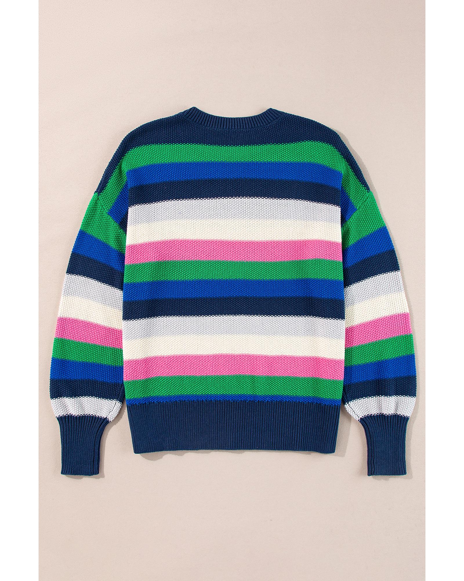 Bright Green Rainbow Striped Crew Neck Drop Shoulder Sweater – L