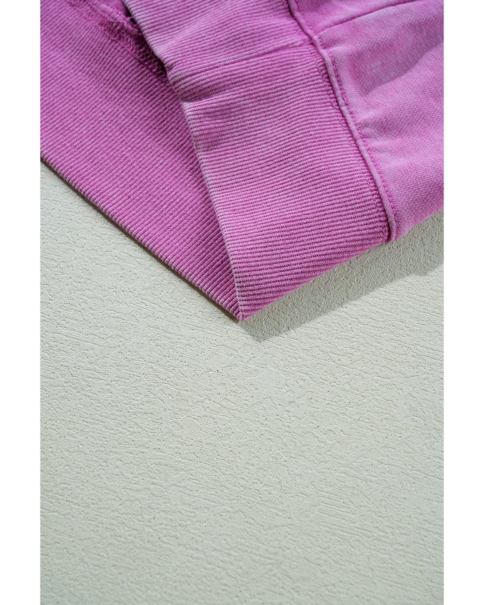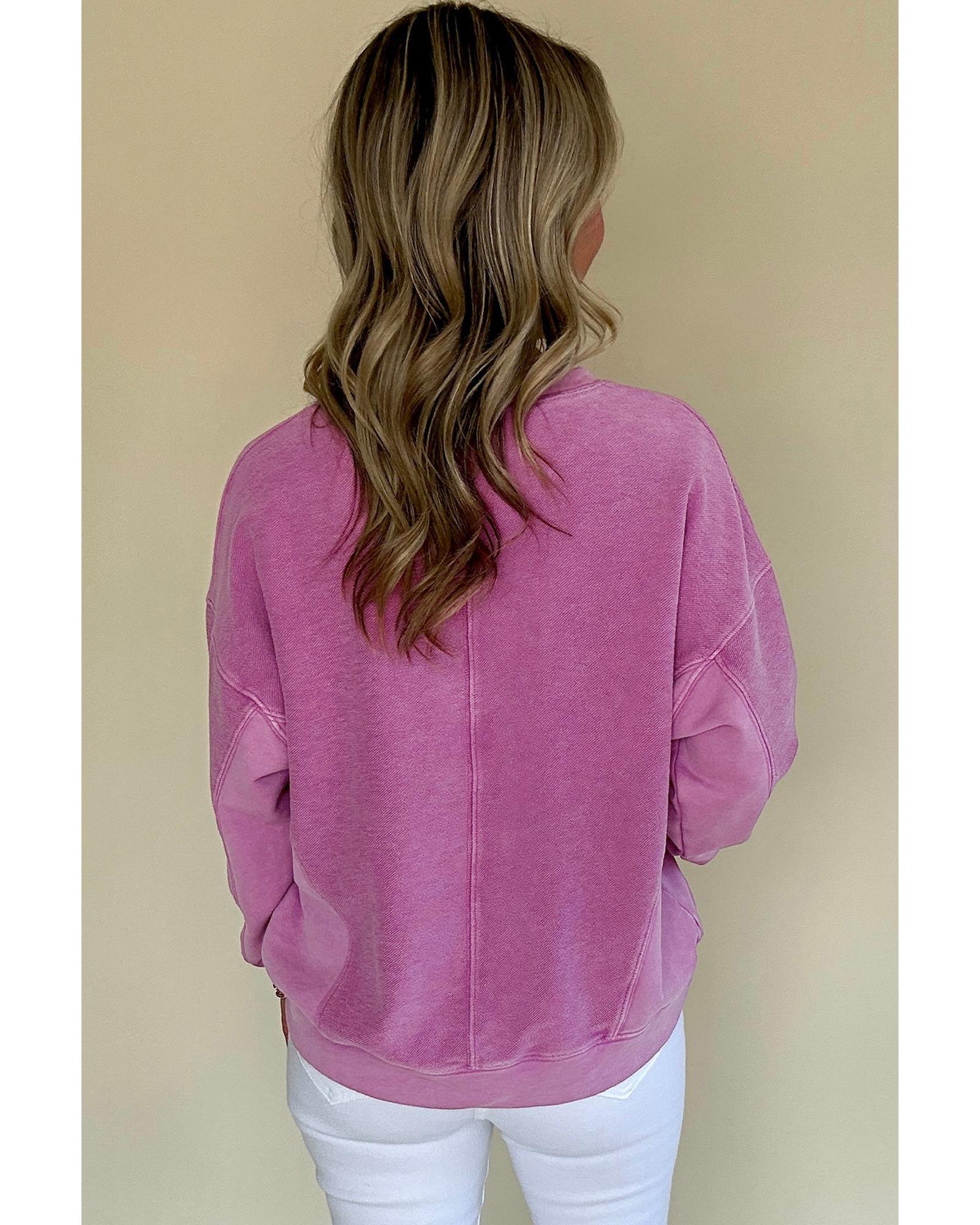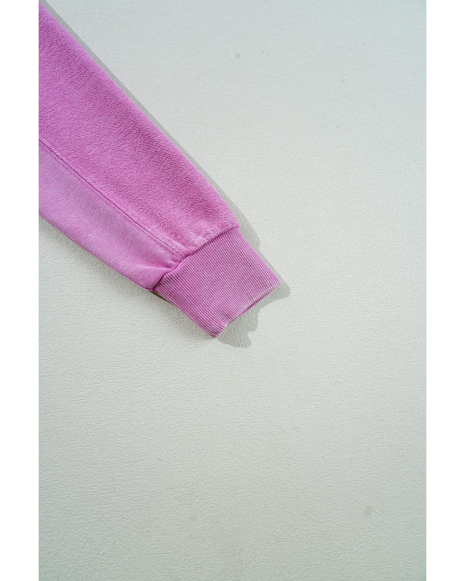 Bright Pink Solid Color Notched Neck Drop Shoulder Sweatshirt – L