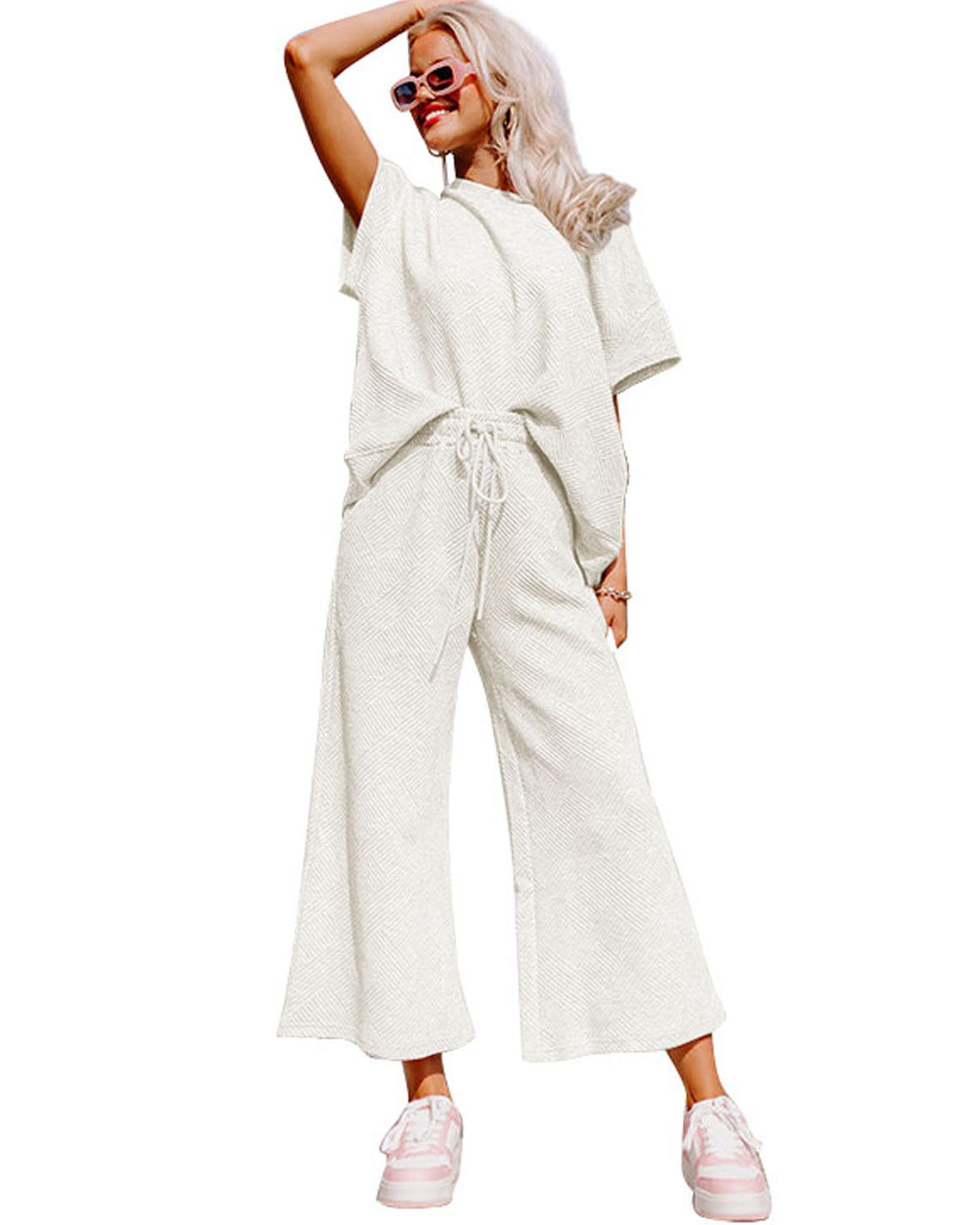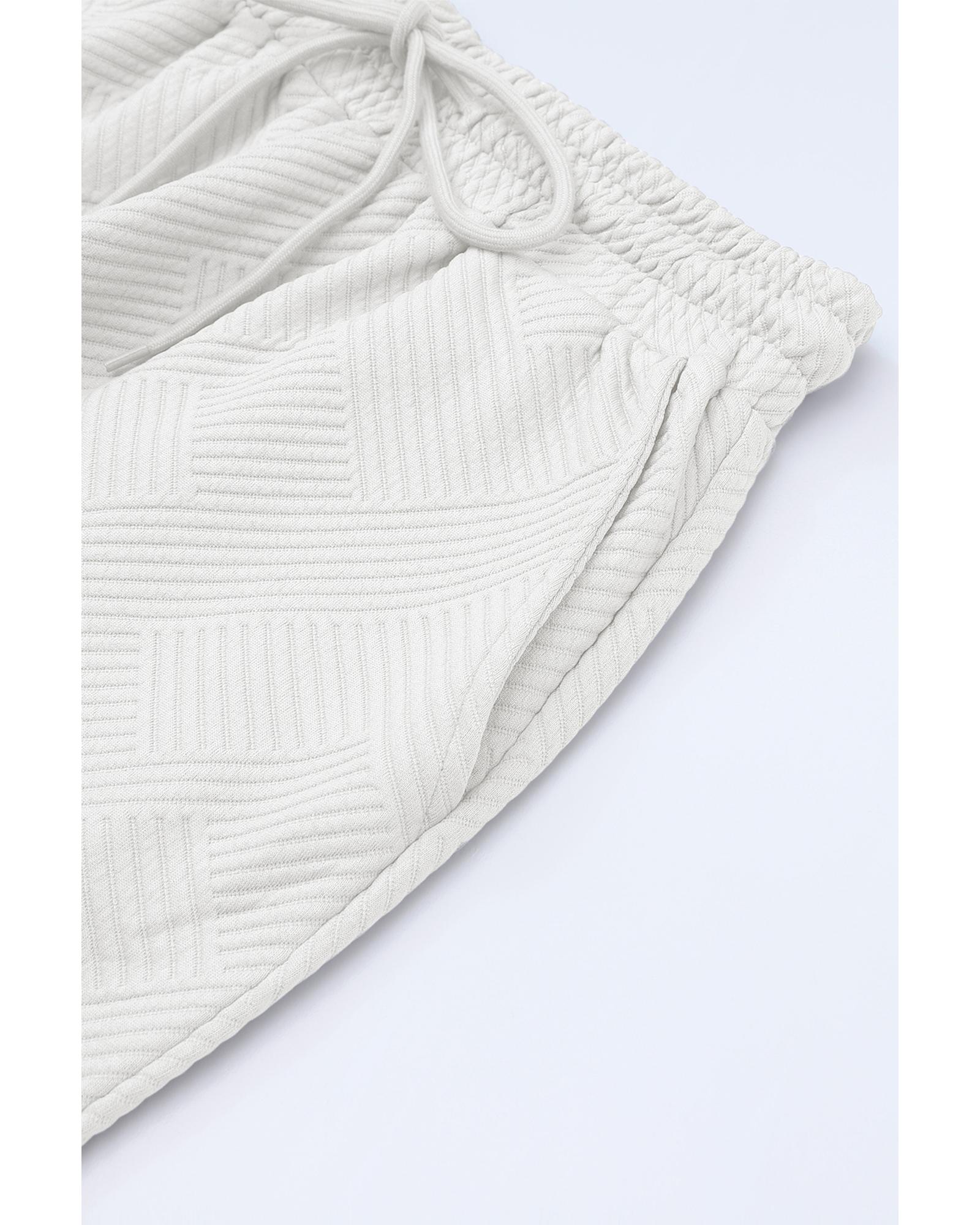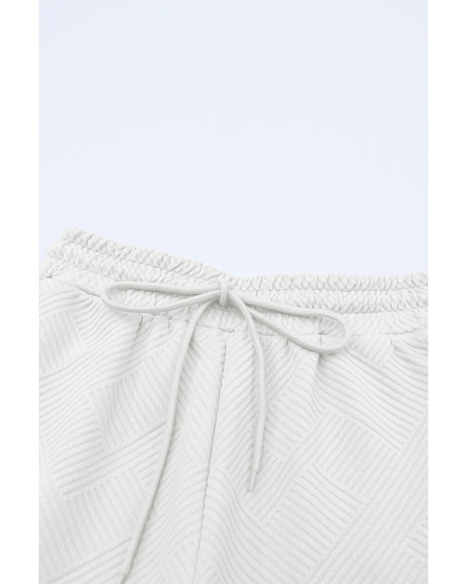 Bright White Textured Loose Fit T Shirt and Drawstring Pants Set – M