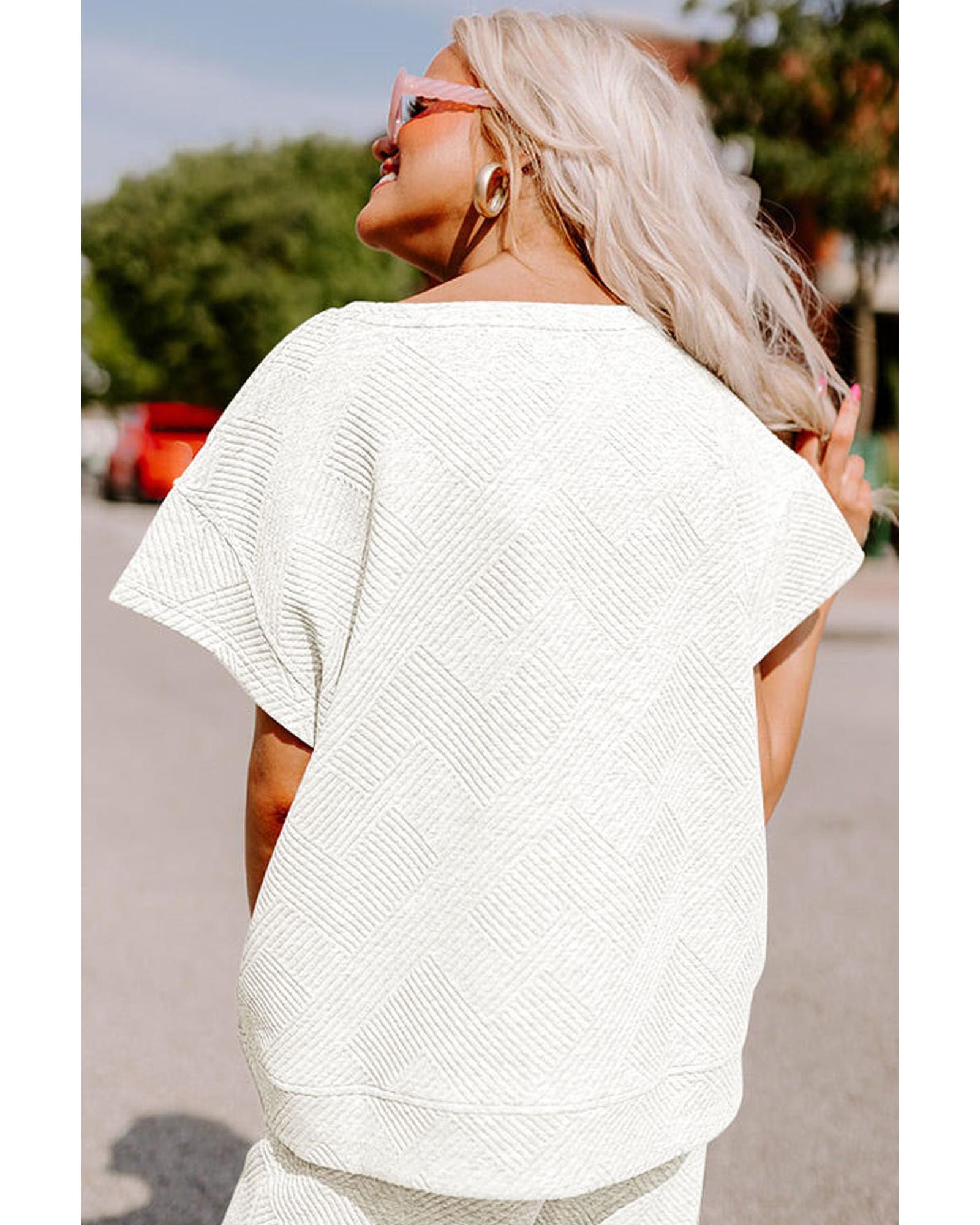 - Bright white textured loose fit t