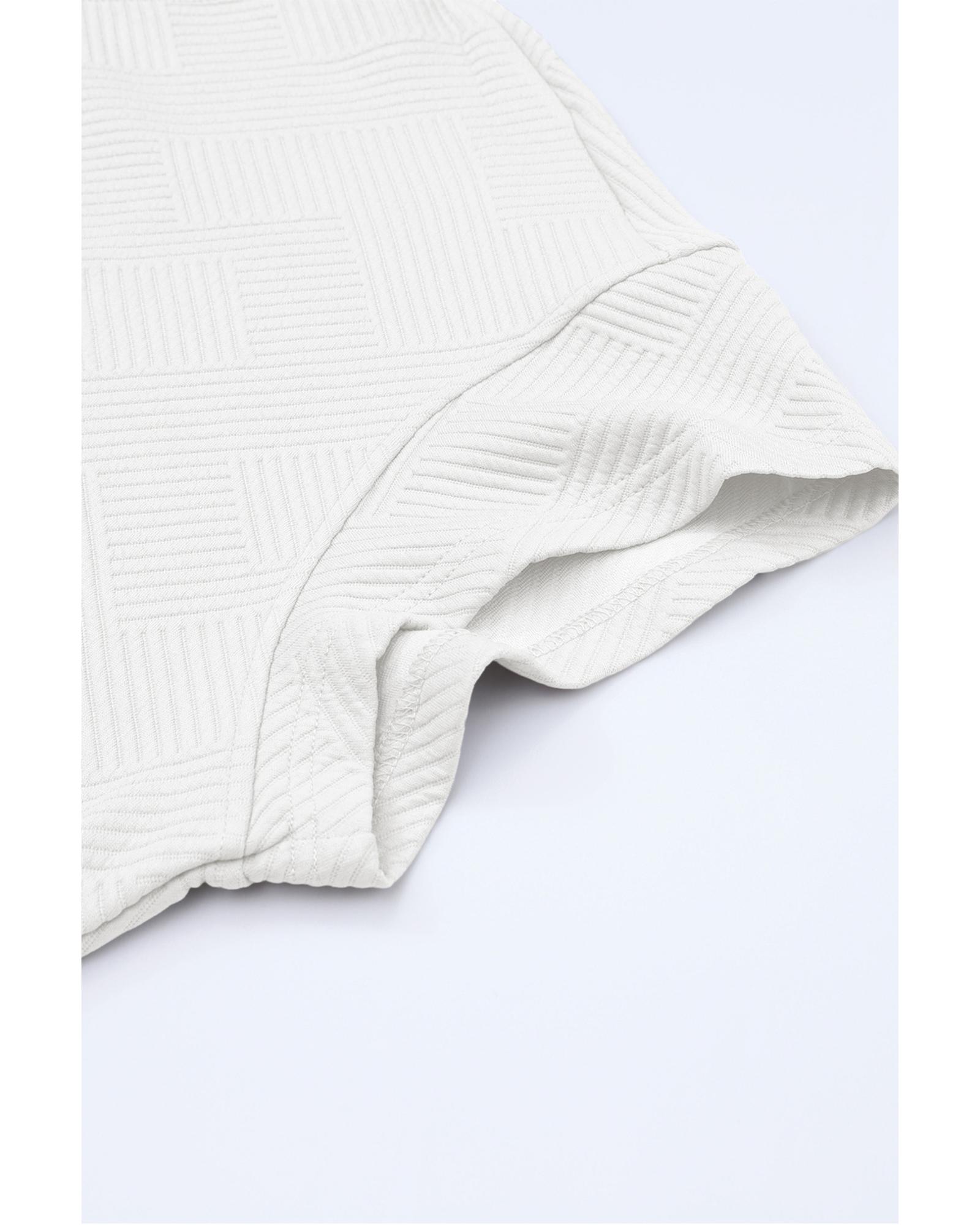 White Textured Cropped Hoodie and Shorts Set - 2XL