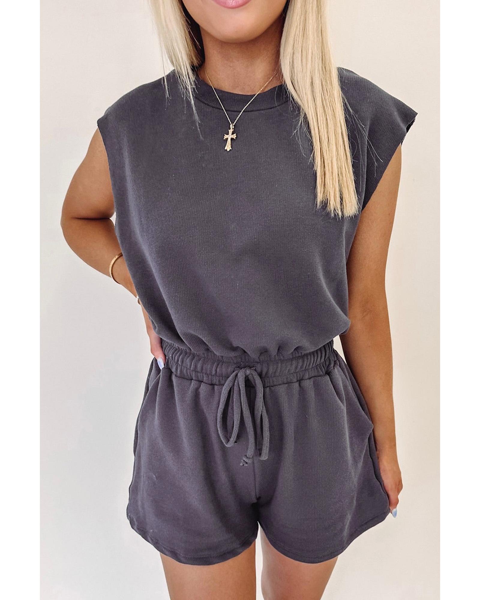 Bristol Black Knit Open Back Cap Sleeve Drawstring Romper – L