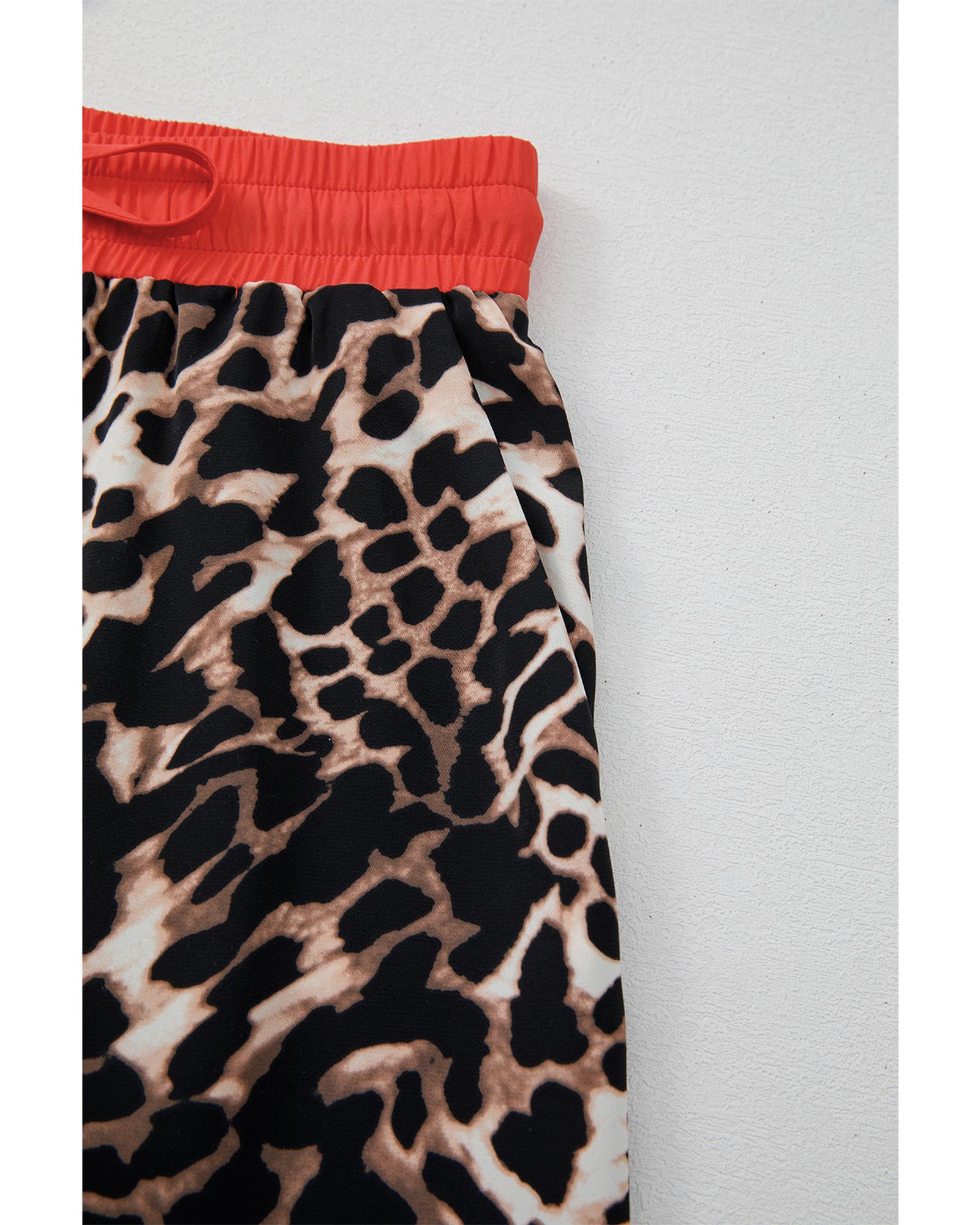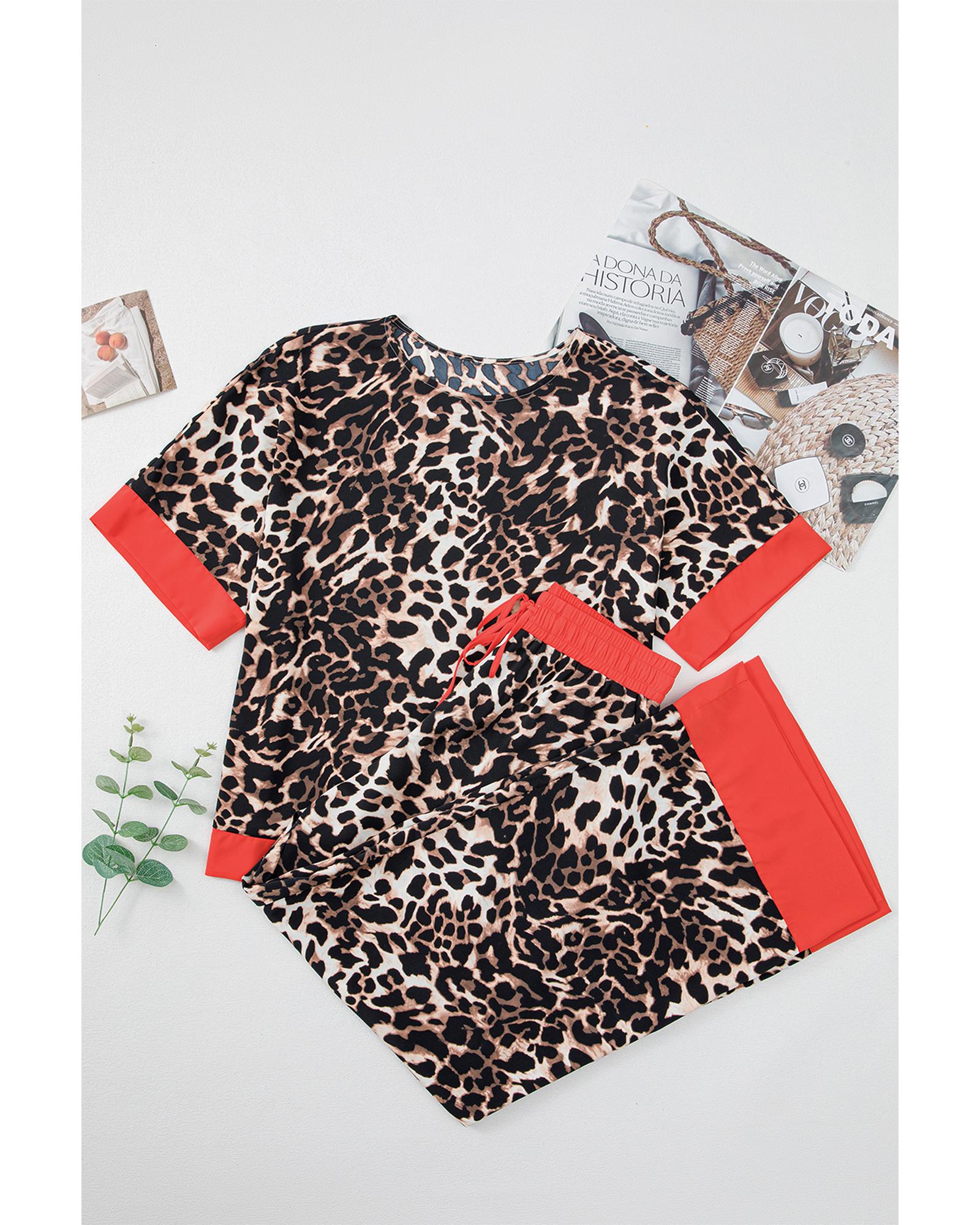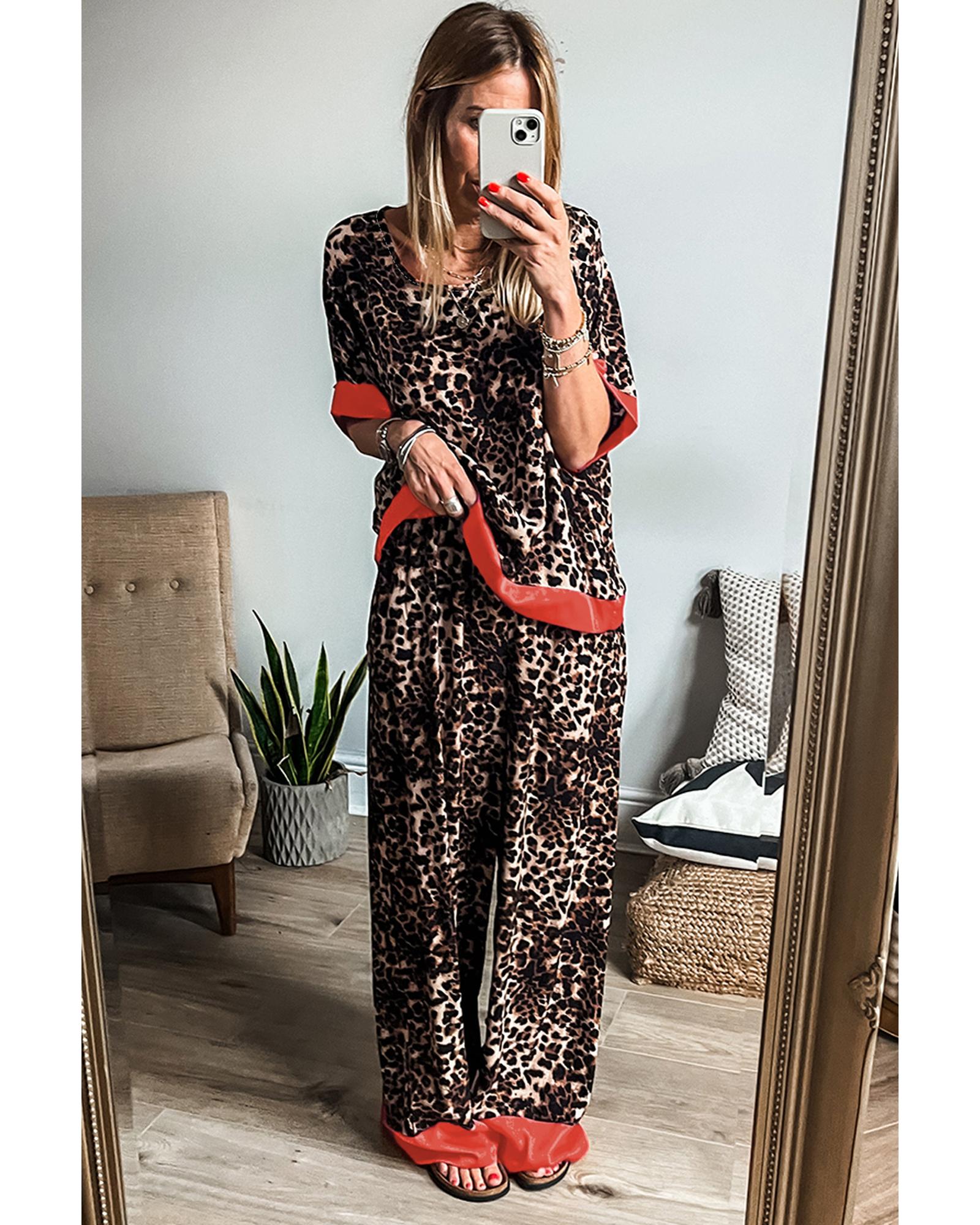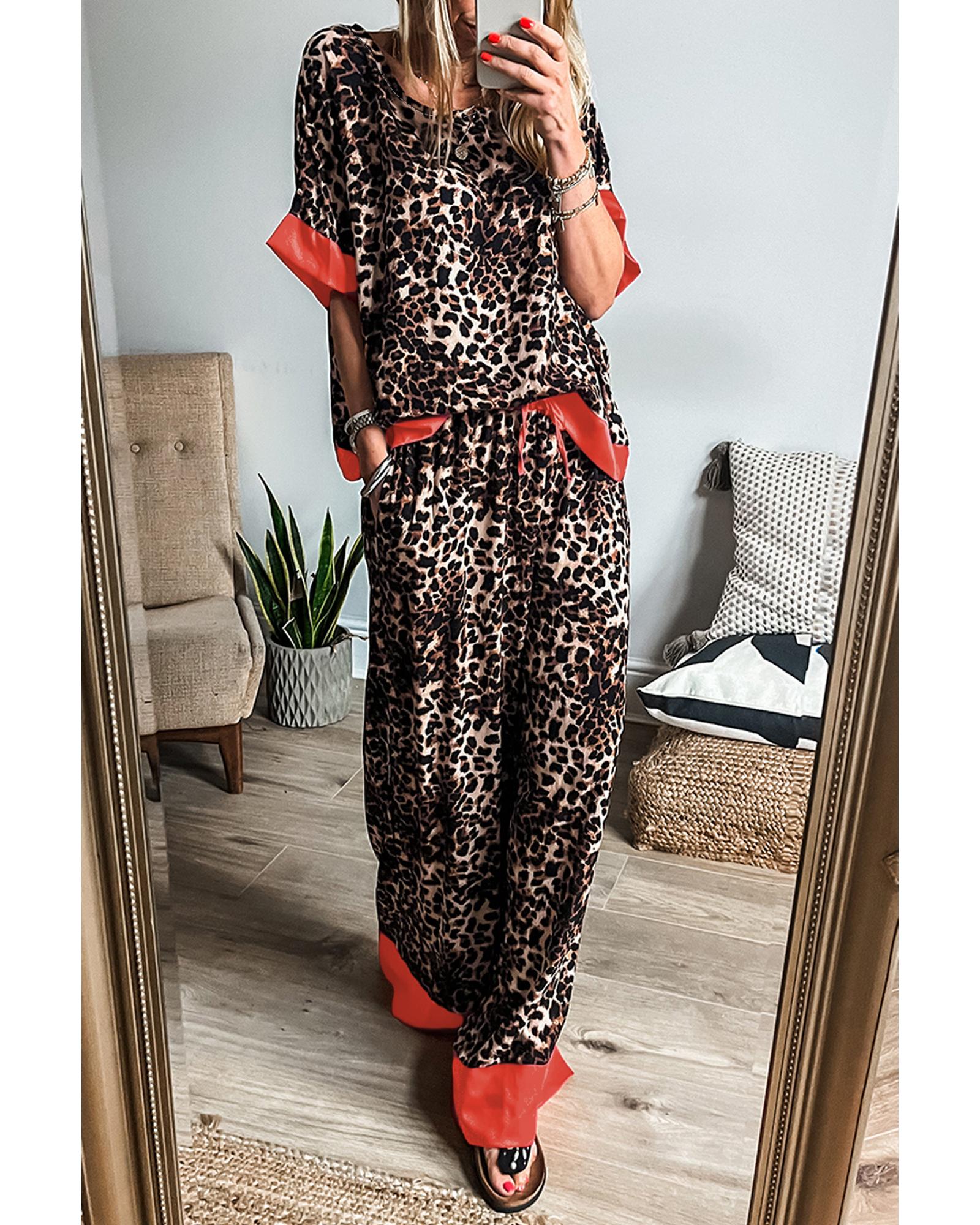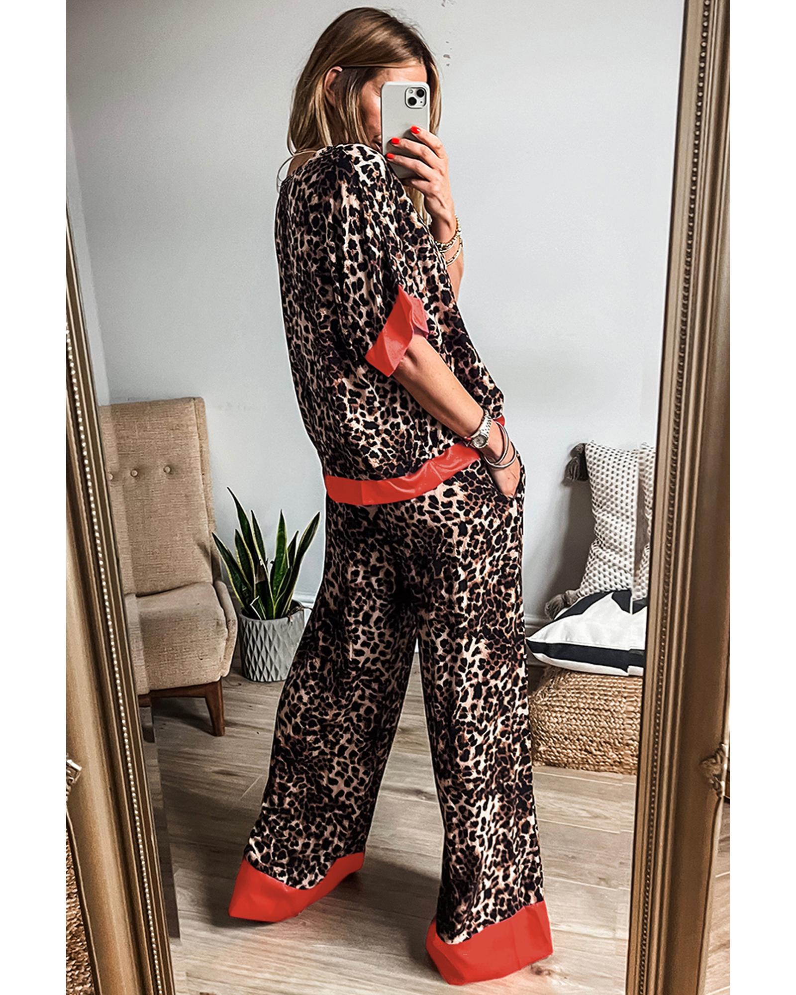 Brown Animal Print Color Contrast Edge Loose Fit Pants Set – XL