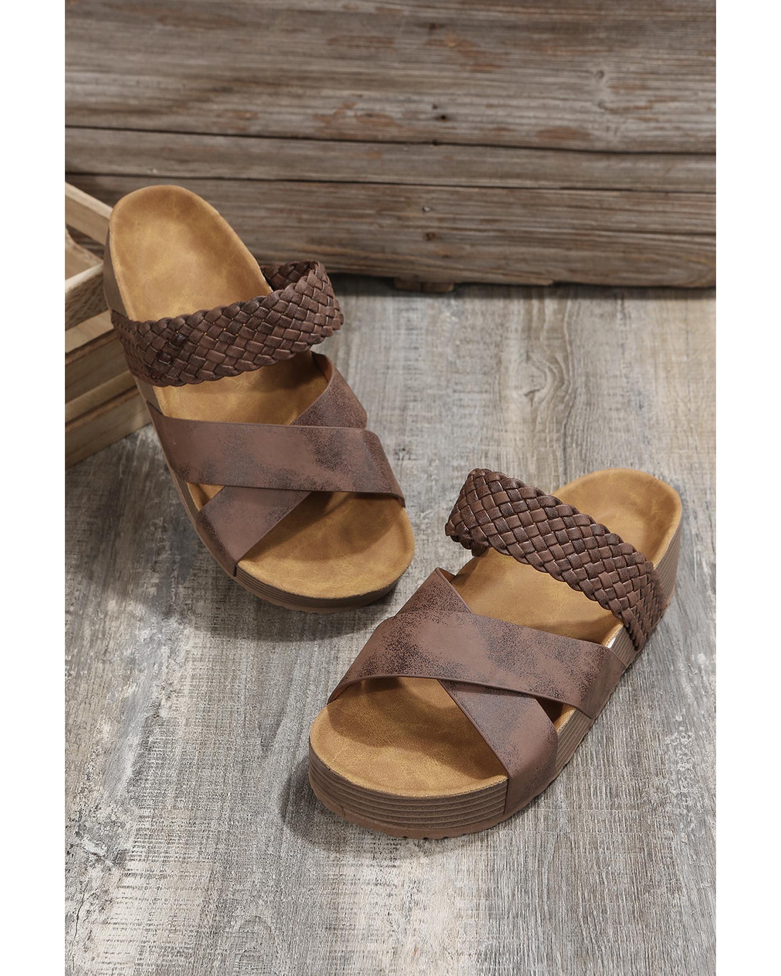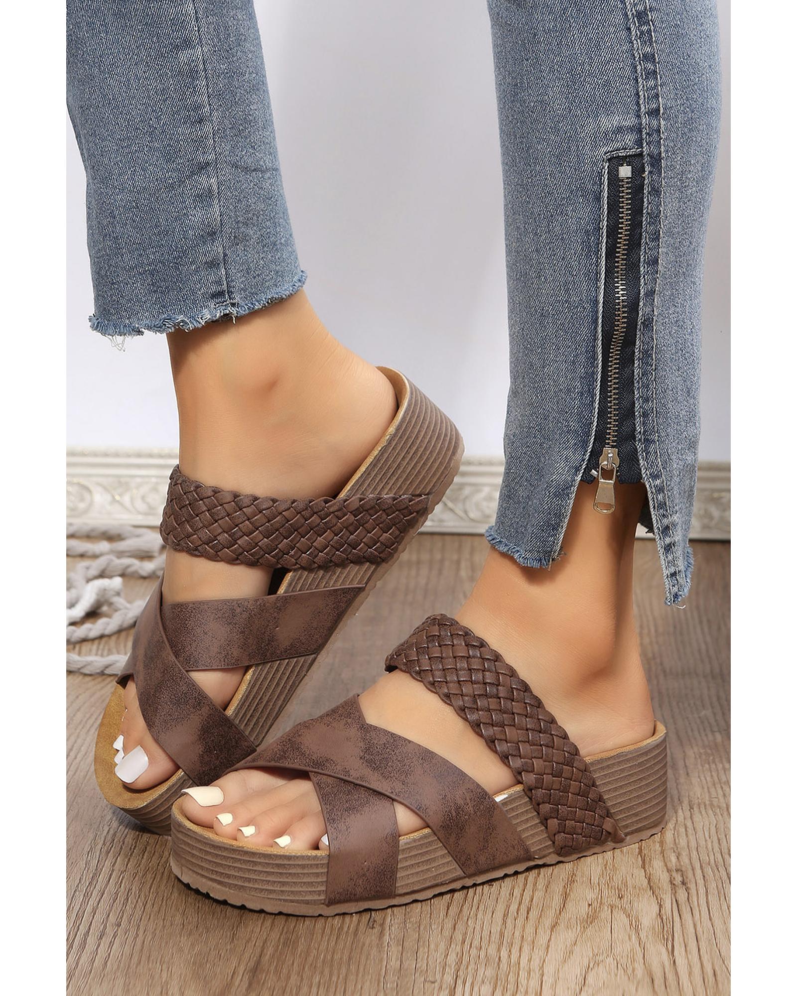 Brown Braided Detail Criss Cross Platform Slippers - 41 EU