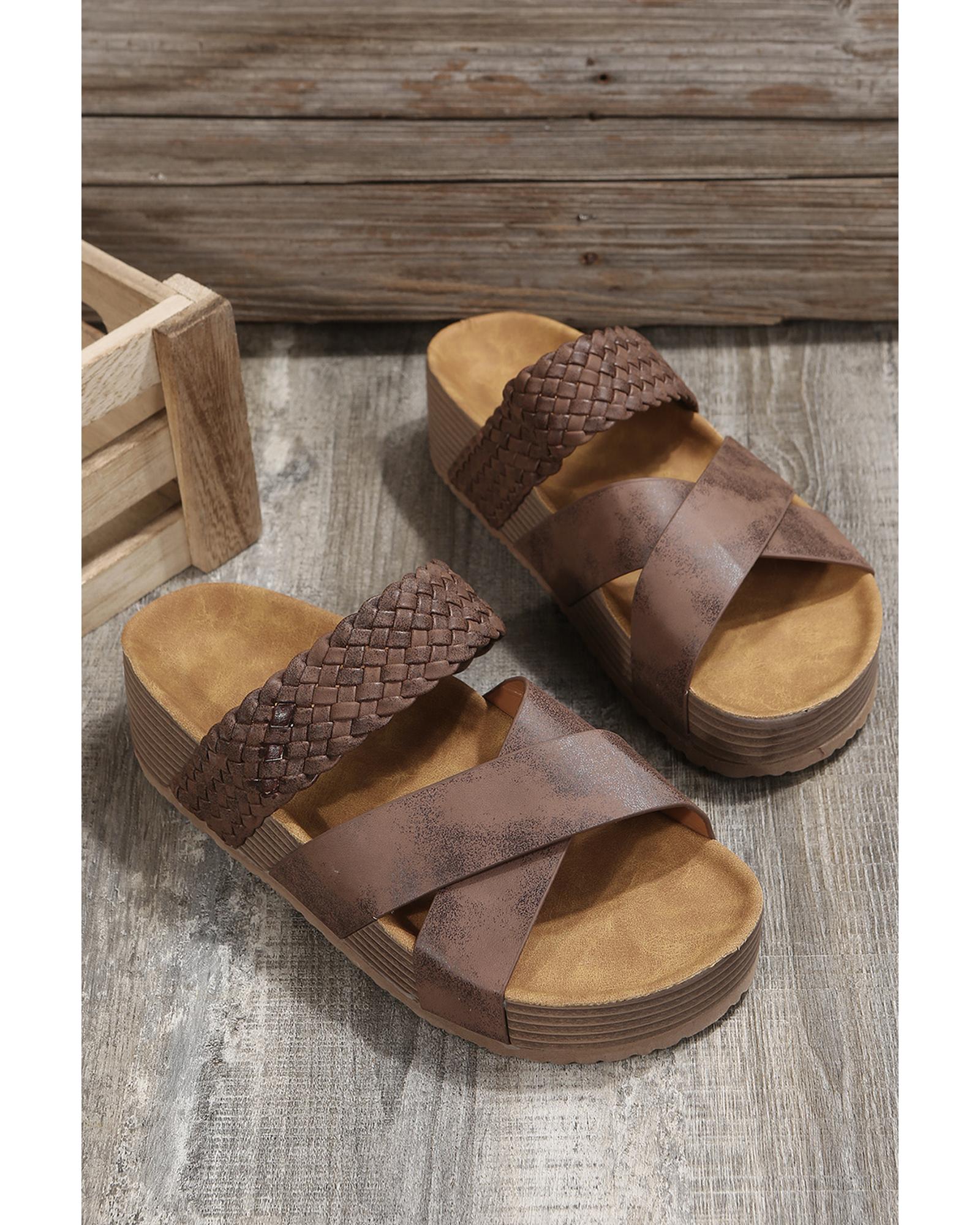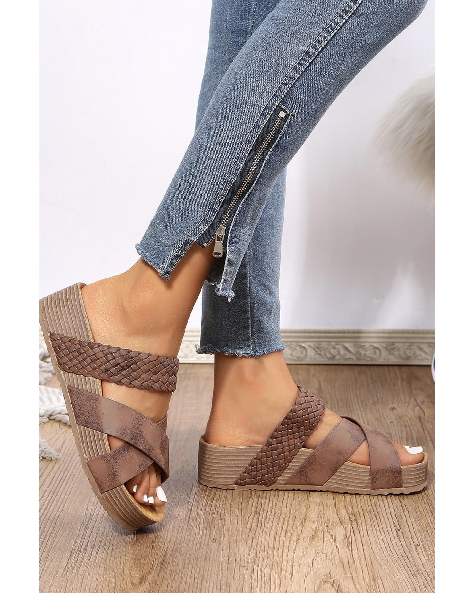 Brown Braided Detail Criss Cross Platform Slippers - 41 EU Original price was: $68.99.Current price is: $36.99.
