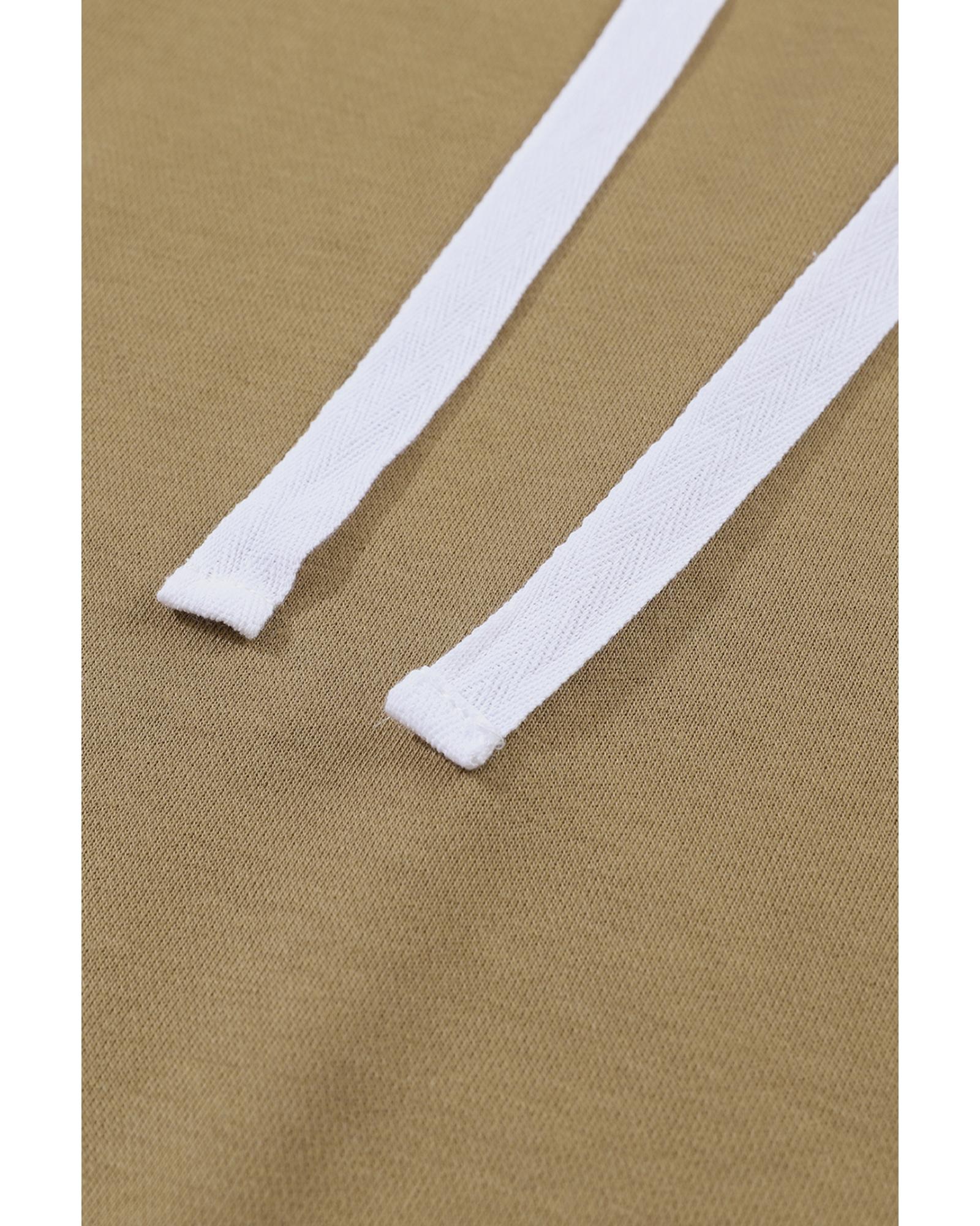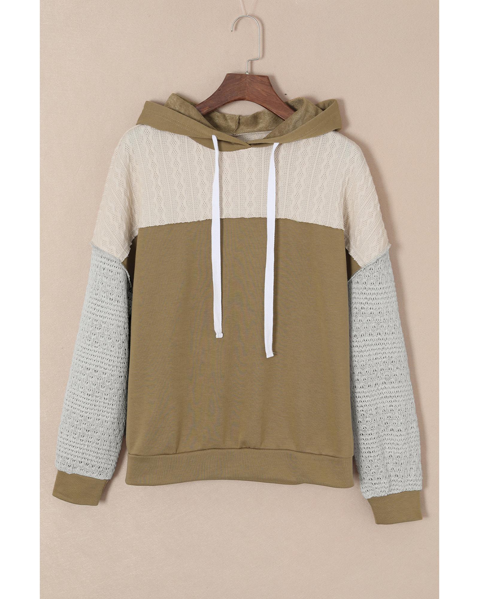 Brown Colorblock Patchwork Pullover Hoodie – L