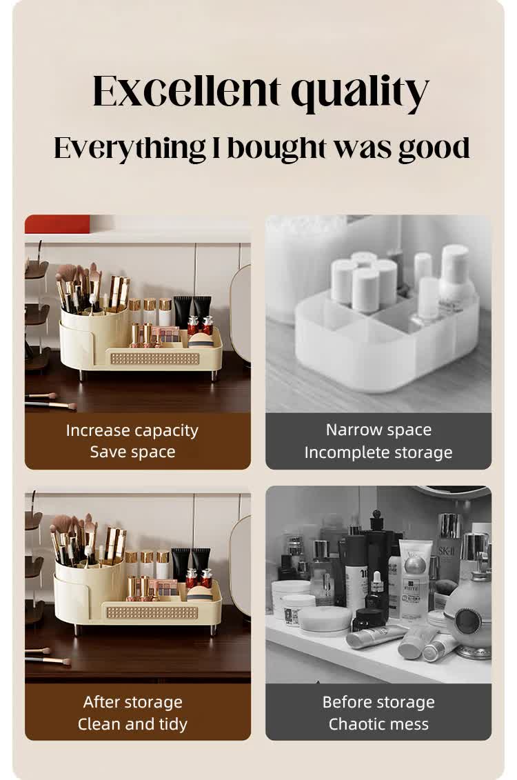 Upgrade your beauty routine with this elegant and practical cosmetic organizer. Ideal for personal use or as a thoughtful gift for makeup enthusiasts.