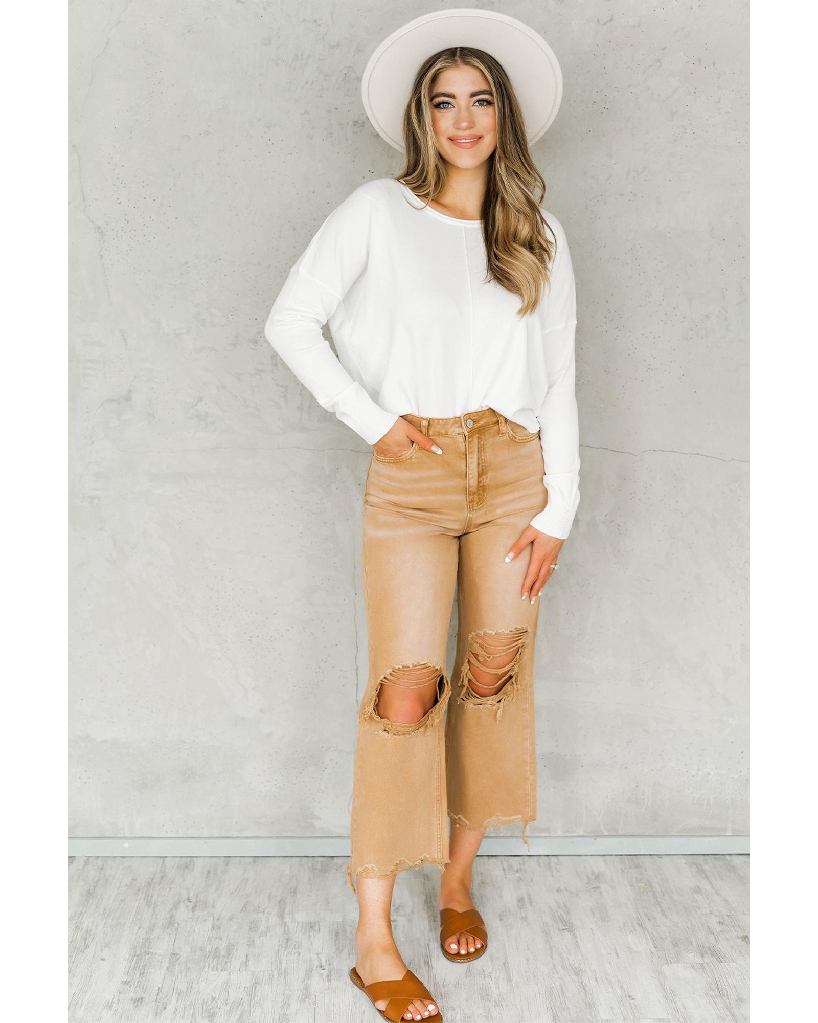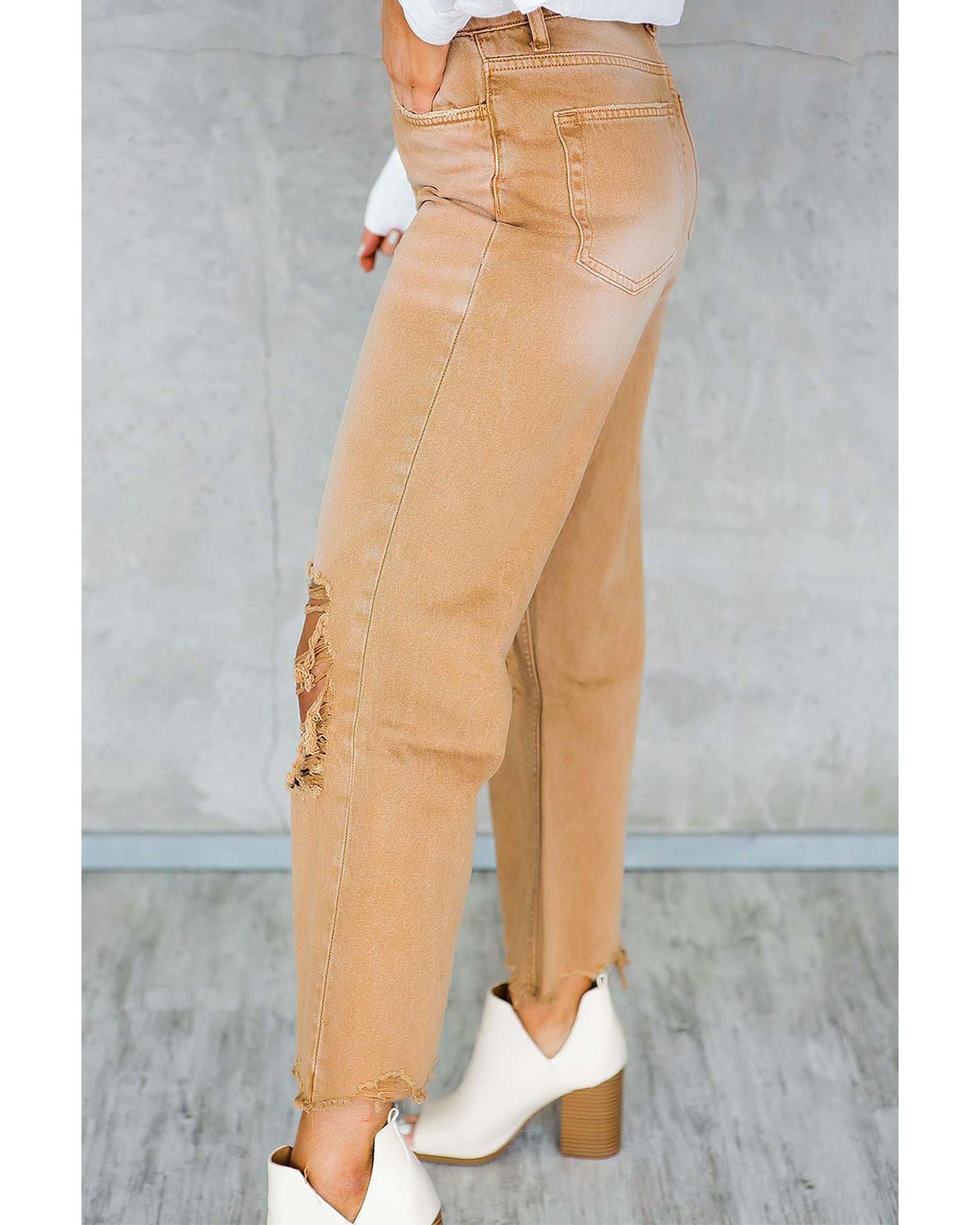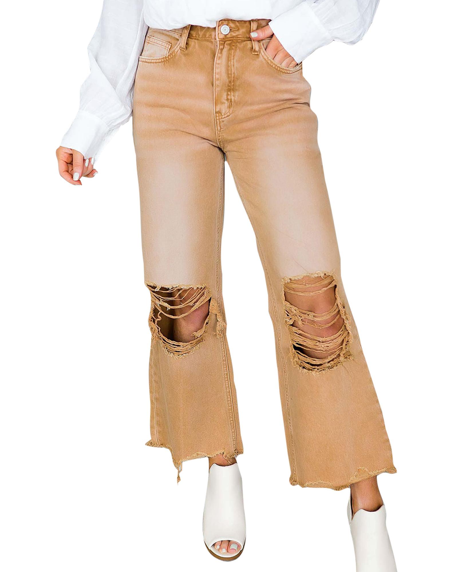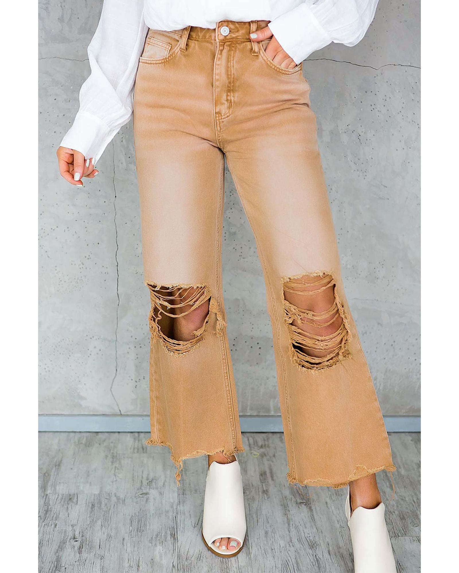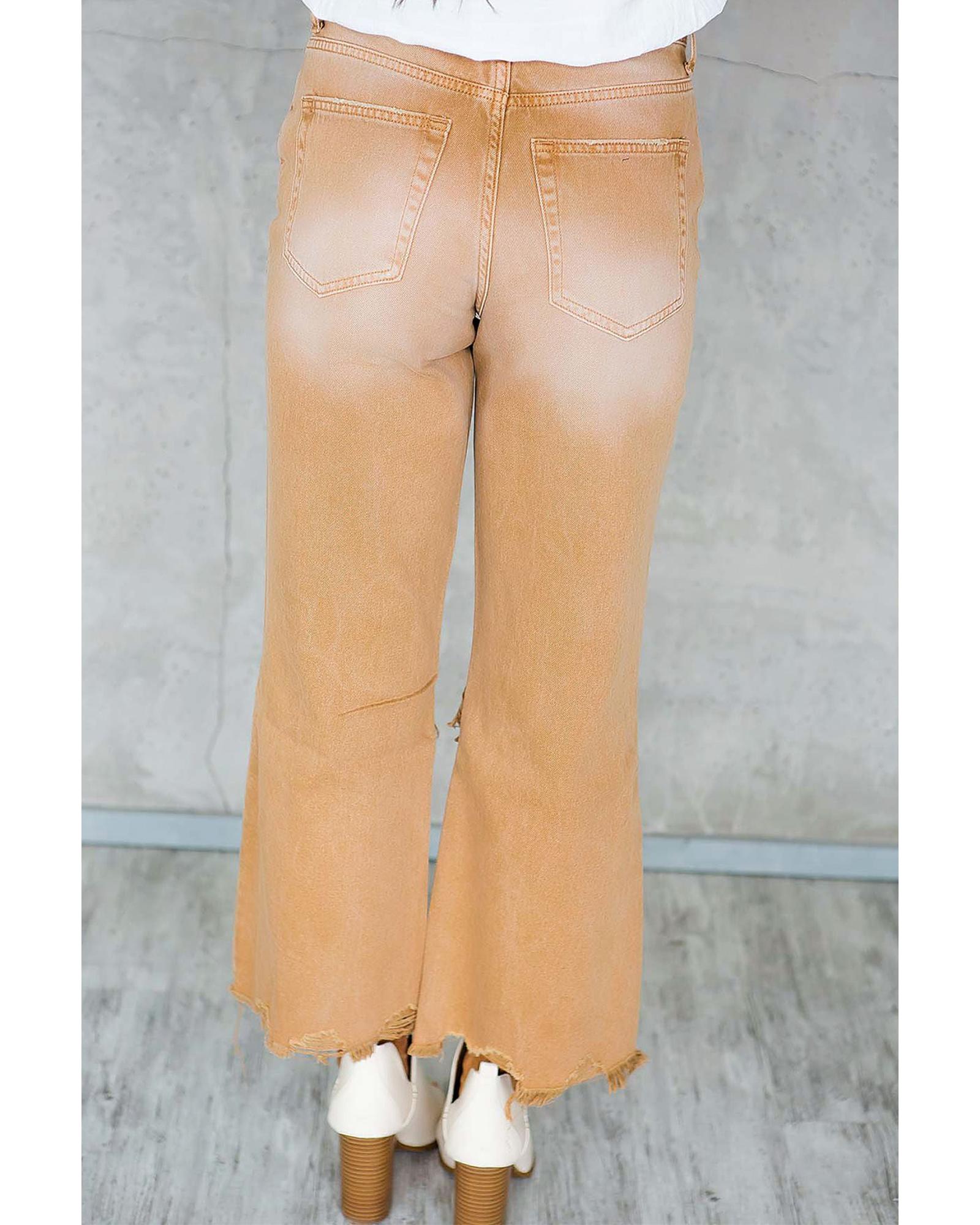 Brown Distressed Hollow-out High Waist Cropped Flare Jeans – 10 US