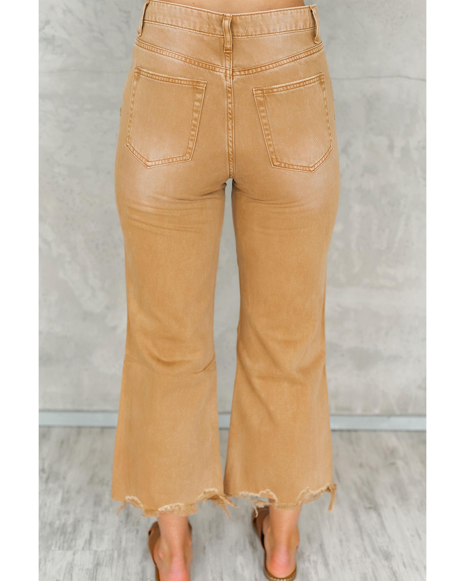 Brown Distressed Hollow-out High Waist Cropped Flare Jeans – 12 US